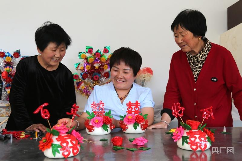 西峰區(qū)新橋村村民觀賞朱亞玲做的喜饃(央廣網(wǎng)發(fā) 盤小美 攝)