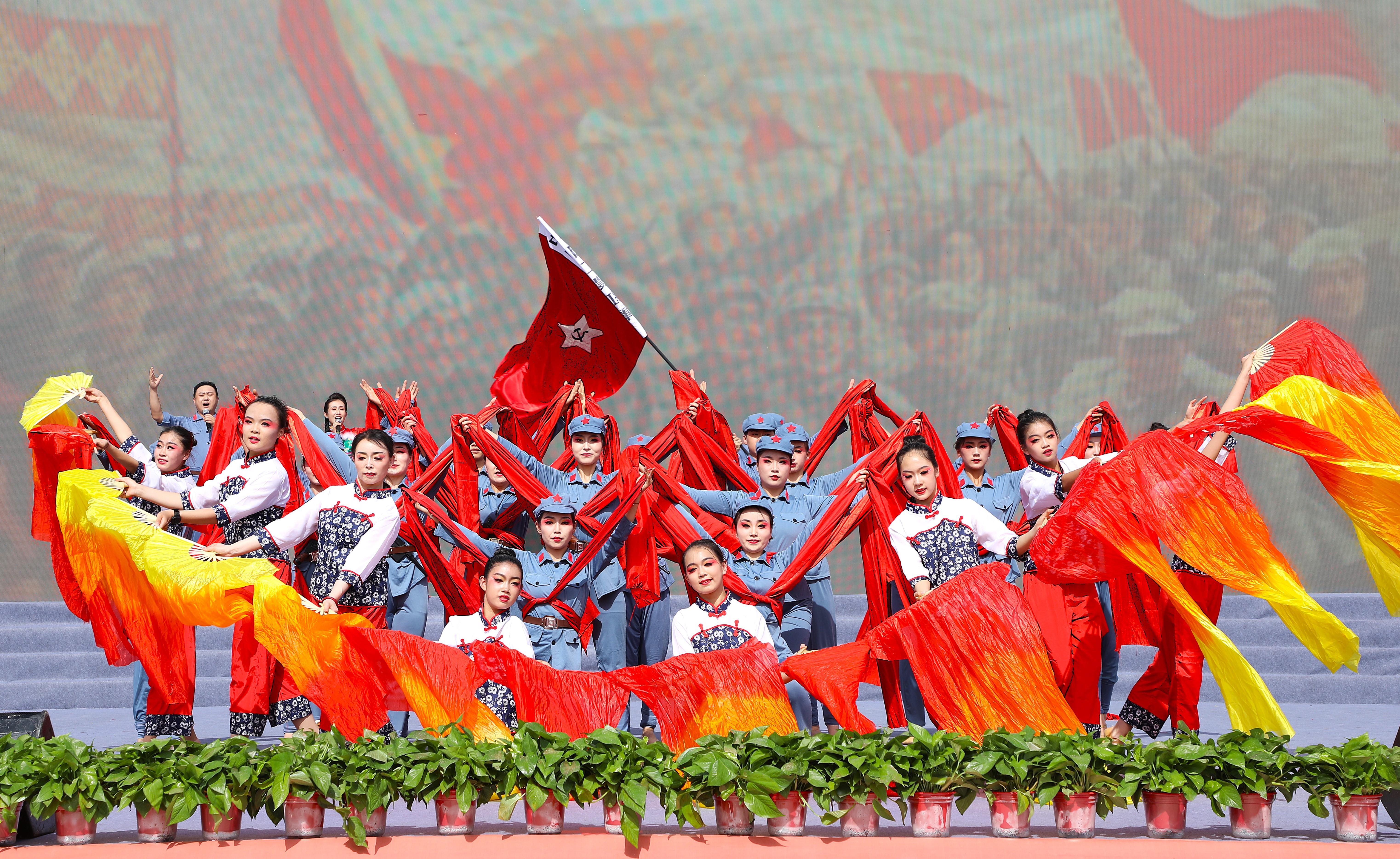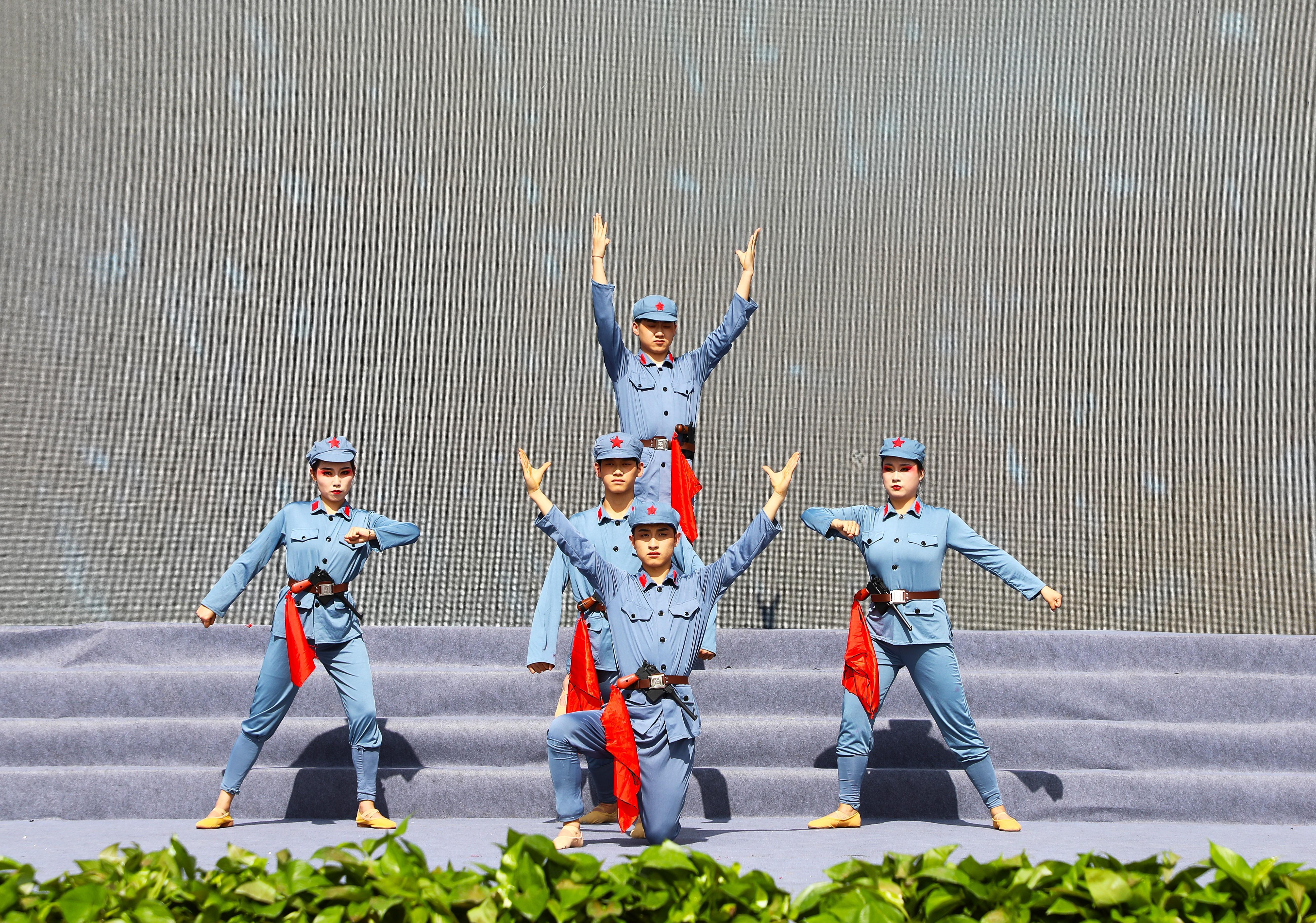 隨后,女聲獨唱《再唱高樓萬丈平地起》傾訴土地深情,音樂詩朗誦《紅色環(huán)縣》訴說紅色信仰,男聲獨唱《山城堡戰(zhàn)役》致敬歷史豐碑。情景舞蹈《山梁上的旗》以山城堡戰(zhàn)役為背景,再現(xiàn)革命年代隴東兒女奮勇精神,讓紅色基因傳承。
