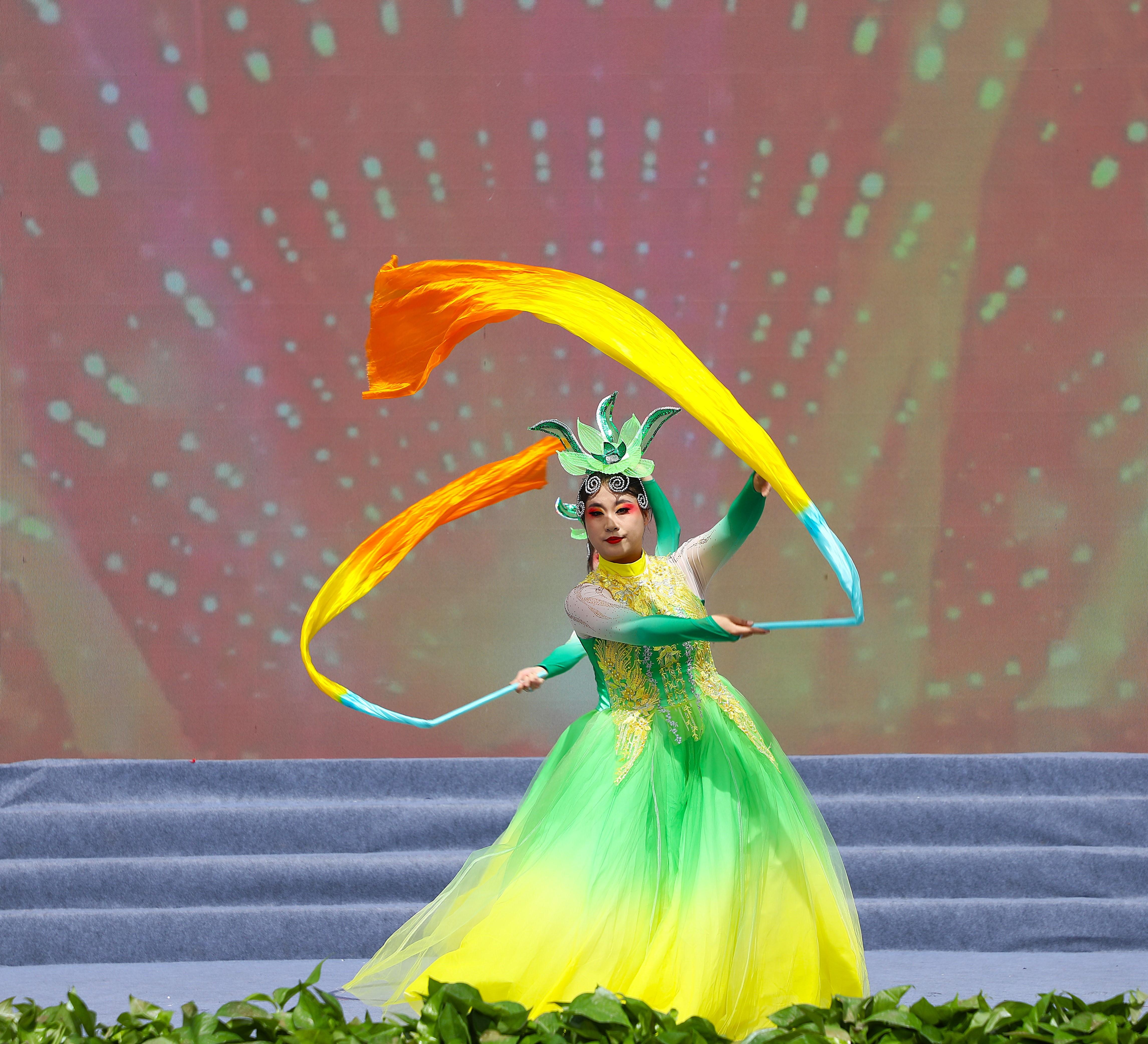 演出在氣勢恢宏的開場舞《春到隴原》中拉開帷幕。作為本屆文藝專場演出的開篇節(jié)目,演員手持彩綢,以靈動舞姿描繪隴東大地春意畫卷,舞步輕盈似麥浪搖曳,展現(xiàn)環(huán)縣人民勤勞奮進的精神風貌。