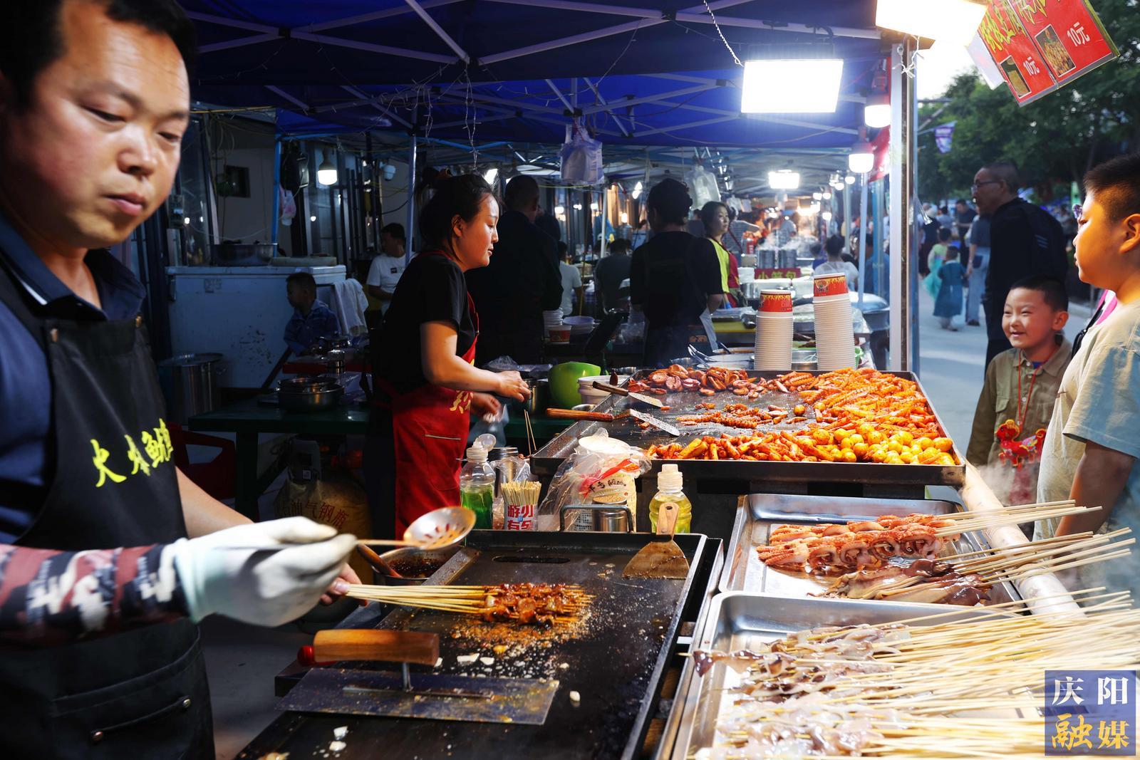 連日來,節(jié)會(huì)美食品鑒區(qū)內(nèi)人聲鼎沸,美食飄香。數(shù)百個(gè)展位的各種特色美食,吸引了無數(shù)游客流連忘返,盡享饕餮大餐。特別是蒸碗、羊肉、饸饹面、豬血燴豆腐、涼皮、涼粉等慶陽特色名優(yōu)小吃,更是受到游客的追捧。而燒烤、冰粉、果汁等消夏美食一路熱銷。另外,新疆、湖南、陜西等地的特色美食也一一亮相,吸引游客味蕾嘗鮮。