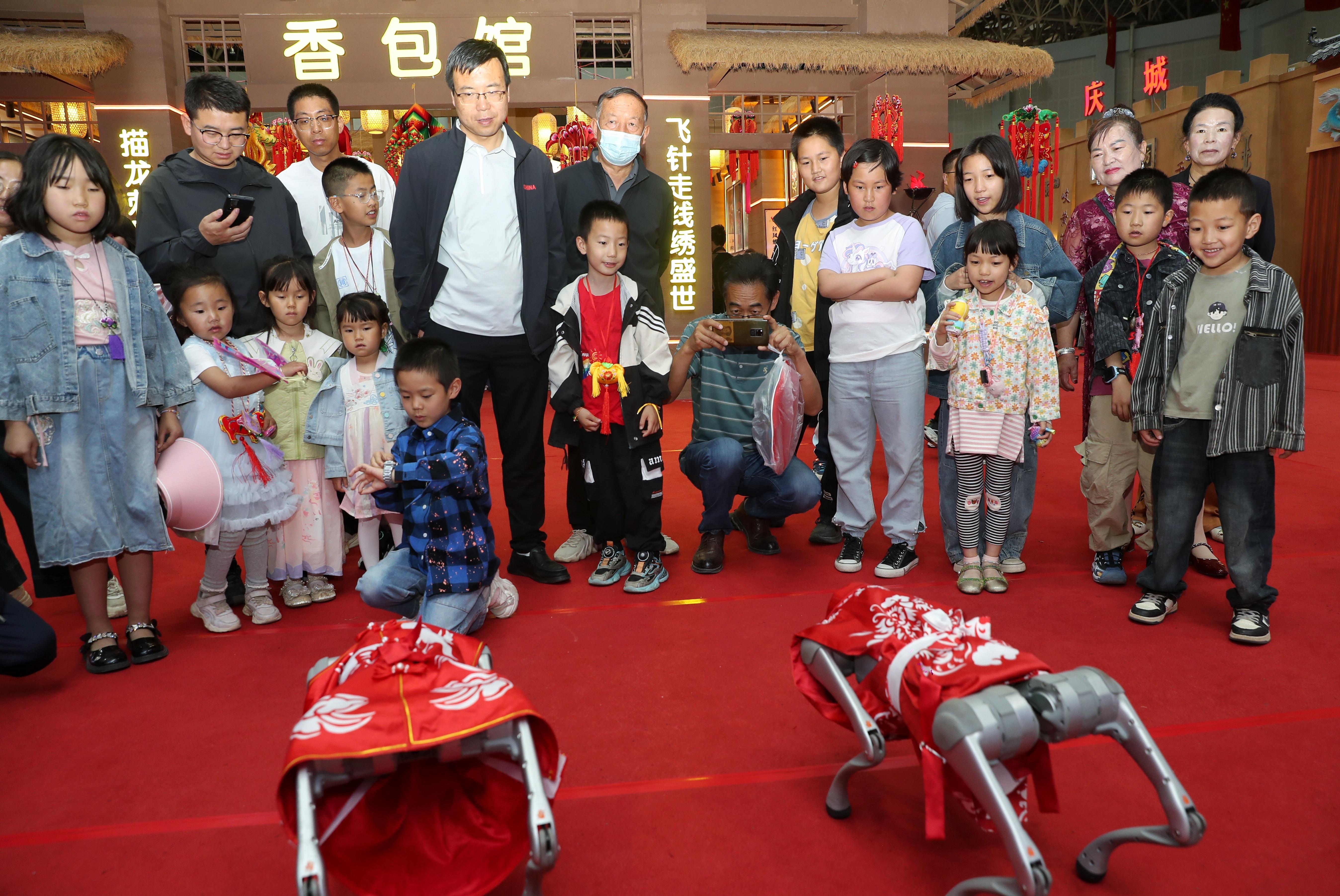 本屆慶陽香包民俗文化節(jié)通過精心策劃與高效實(shí)施,全面展現(xiàn)了慶陽民俗文化的獨(dú)特魅力。開幕式上,舞蹈《香包娃娃·剪云裳》、道情隴劇與慶陽民歌聯(lián)唱等節(jié)目精彩紛呈,非遺沉浸式體驗(yàn)區(qū)成為全場焦點(diǎn),游客們親手縫制香包、剪刻窗花、演繹皮影,零距離觸摸傳統(tǒng)文化的溫度。智慧文旅館中,機(jī)器人、機(jī)器狗身著剪紙服飾走秀展演,南梁紅色研學(xué)VR沉浸式體驗(yàn)等項(xiàng)目,吸引了大量游客駐足互動。