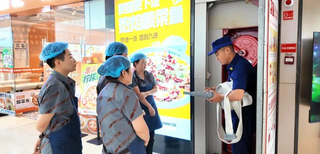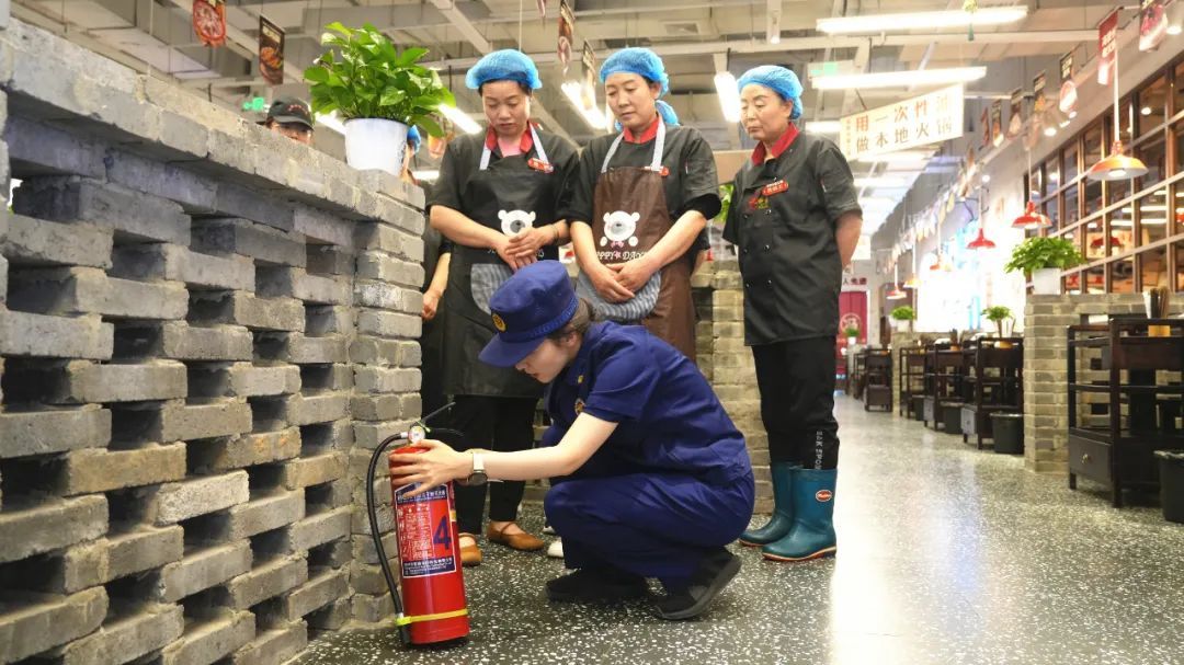 宣傳員邊細致排查邊現(xiàn)場培訓,將疏散通道、煙道、后廚這些“要害部位”作為重點課堂,反復叮囑確保疏散通道時刻暢通無阻,逃生標識清晰可見,對燃氣使用、電氣線路等關鍵環(huán)節(jié)也一一細致排查,不放過任何隱患角落。宣傳員還現(xiàn)場手把手指導店員滅火器、滅火毯、消火栓等常見消防器材的使用技巧,邀請大家親自操作,確保每位參與者都能熟練掌握。