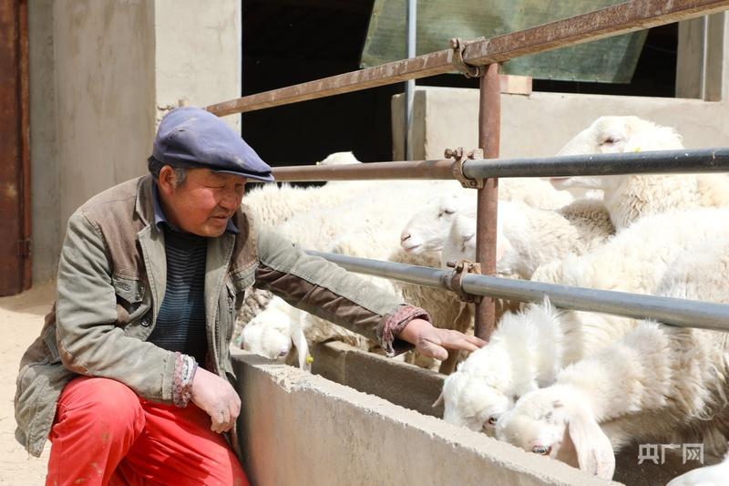 李清弟觀察羊的進食和健康狀況(央廣網(wǎng)發(fā) 郭海霞 攝)