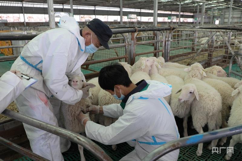 甘肅慶環(huán)肉羊制種有限公司工作人員在給羊只做疫病防疫(央廣網(wǎng)發(fā) 郭海霞 攝)