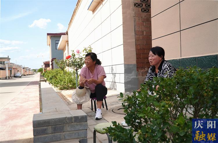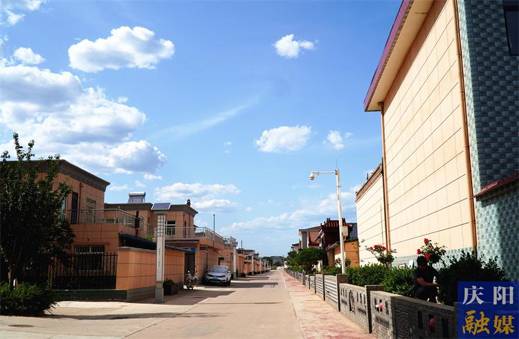 從正寧縣城驅(qū)車至327省道寧正兩縣交界處,一個仿古石碑傲然屹立,這里便是董莊村的入口。步入村子,硬化的村道干凈寬敞,兩旁的民居錯落有致,房前鮮花綠樹點綴。村民們?nèi)齼蓛删墼谝黄穑蚴怯崎e聊天,或是兒孫繞膝,笑容填滿了臉龐。