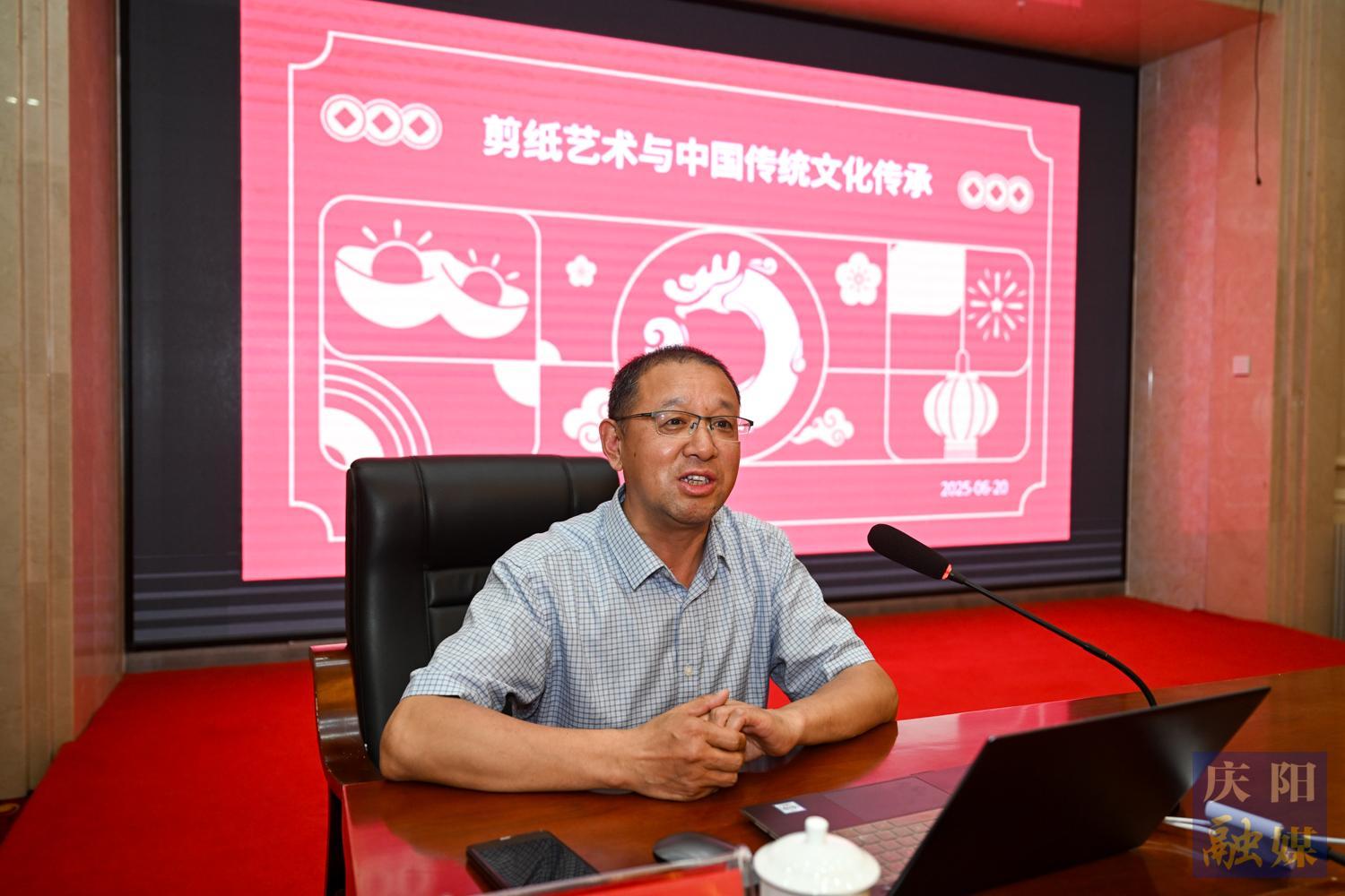 天水師范大學(xué)隴右文化研究中心辦公室主任、教授余糧才作題為《剪紙藝術(shù)與中國(guó)傳統(tǒng)文化傳承》的宣講。