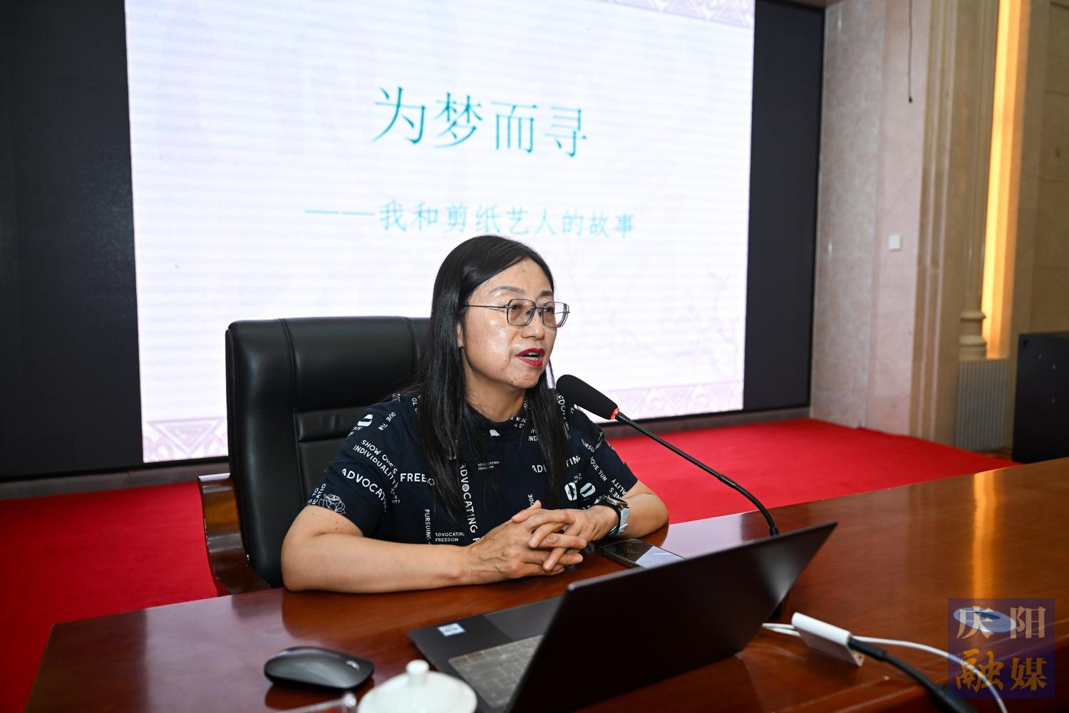 甘肅省民間文藝家協(xié)會(huì)副主席何霞作題為《剪紙藝術(shù)與中國(guó)傳統(tǒng)文化傳承》的宣講。