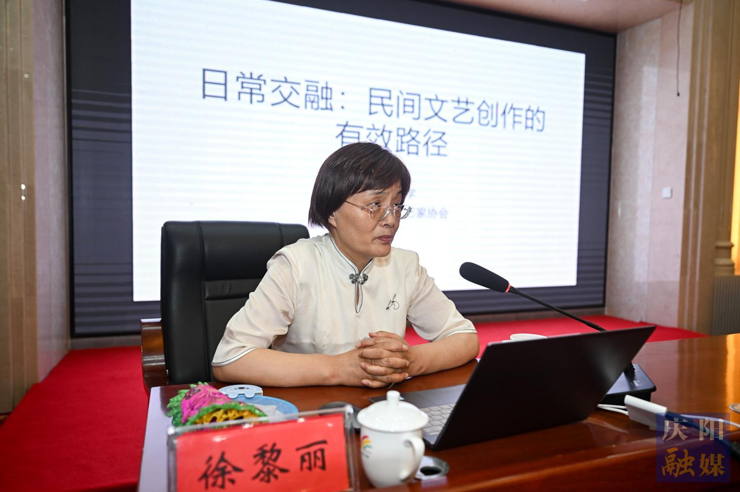 甘肅省文聯(lián)副主席徐黎麗作題為《日常交融:民間文藝創(chuàng)作的有效路徑》的宣講。