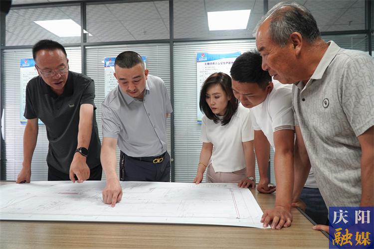 ▲安利鵬(左二)和員工查看公司廠區(qū)規(guī)劃圖。