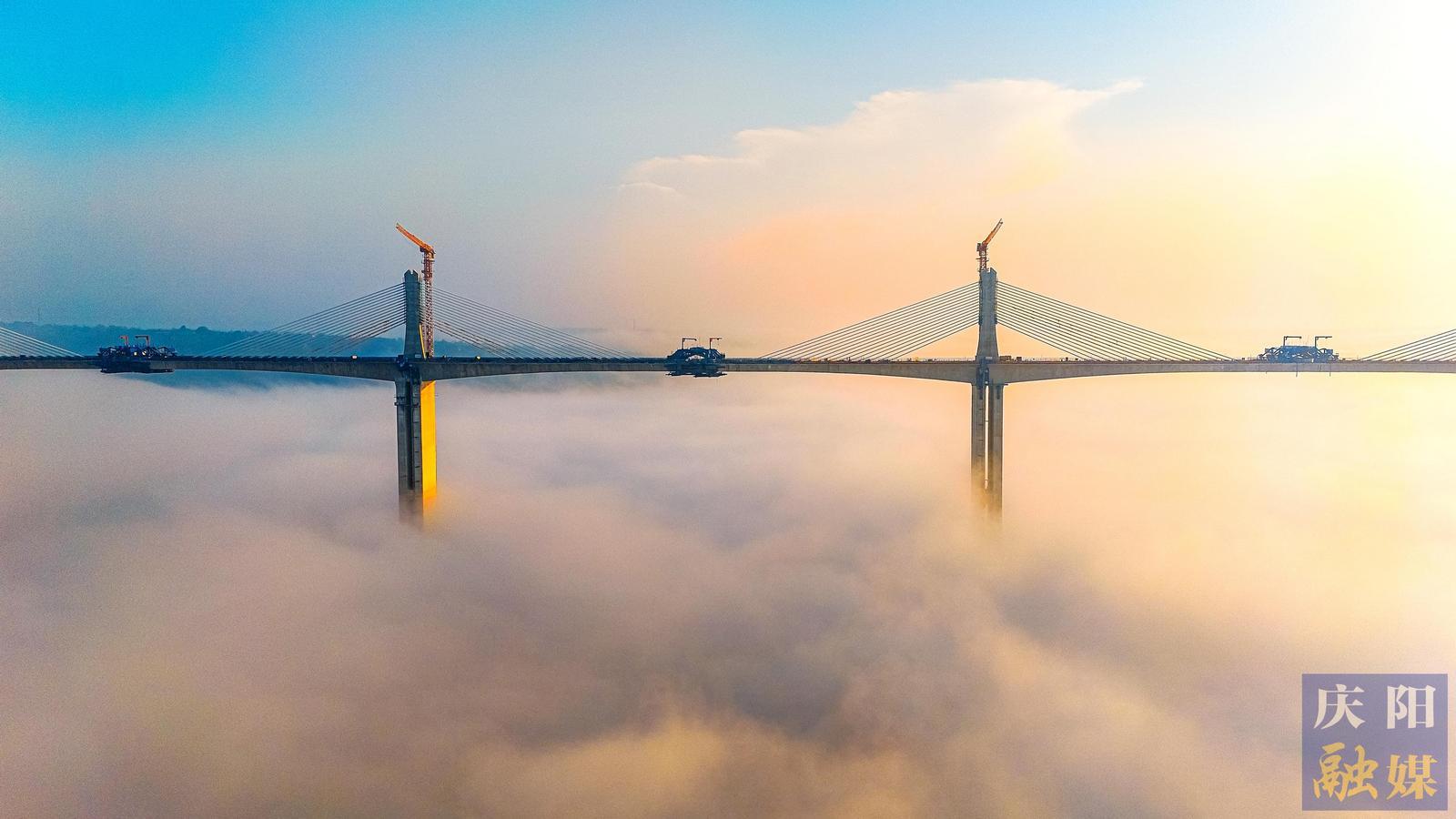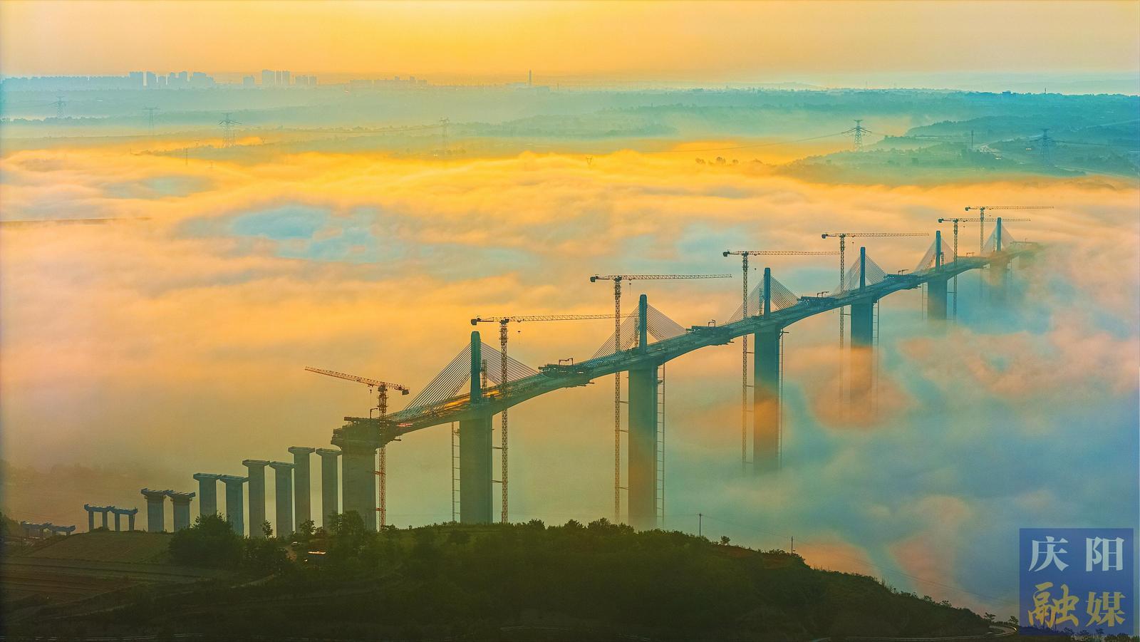 慶陽網(wǎng)訊(特約攝影 王啟寧)6月29日,合水縣境內(nèi),晨霧籠罩著G309線西合公路馬蓮河特大橋建設(shè)現(xiàn)場,工地上塔吊如林矗立,工程車往來穿梭,建設(shè)者們正全力推進項目建設(shè)。