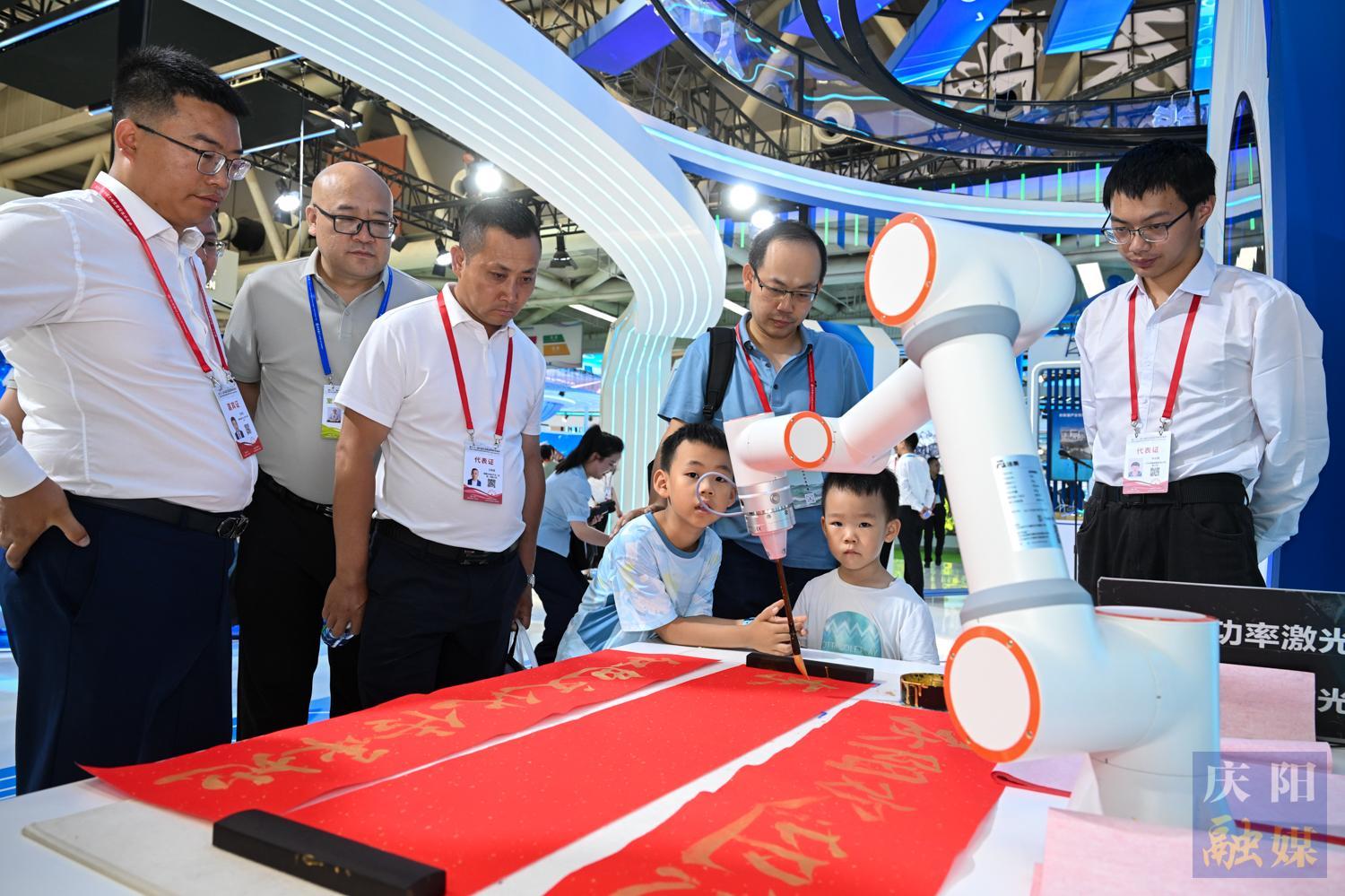 機(jī)械臂現(xiàn)場進(jìn)行書法創(chuàng)作,引來諸多目光。