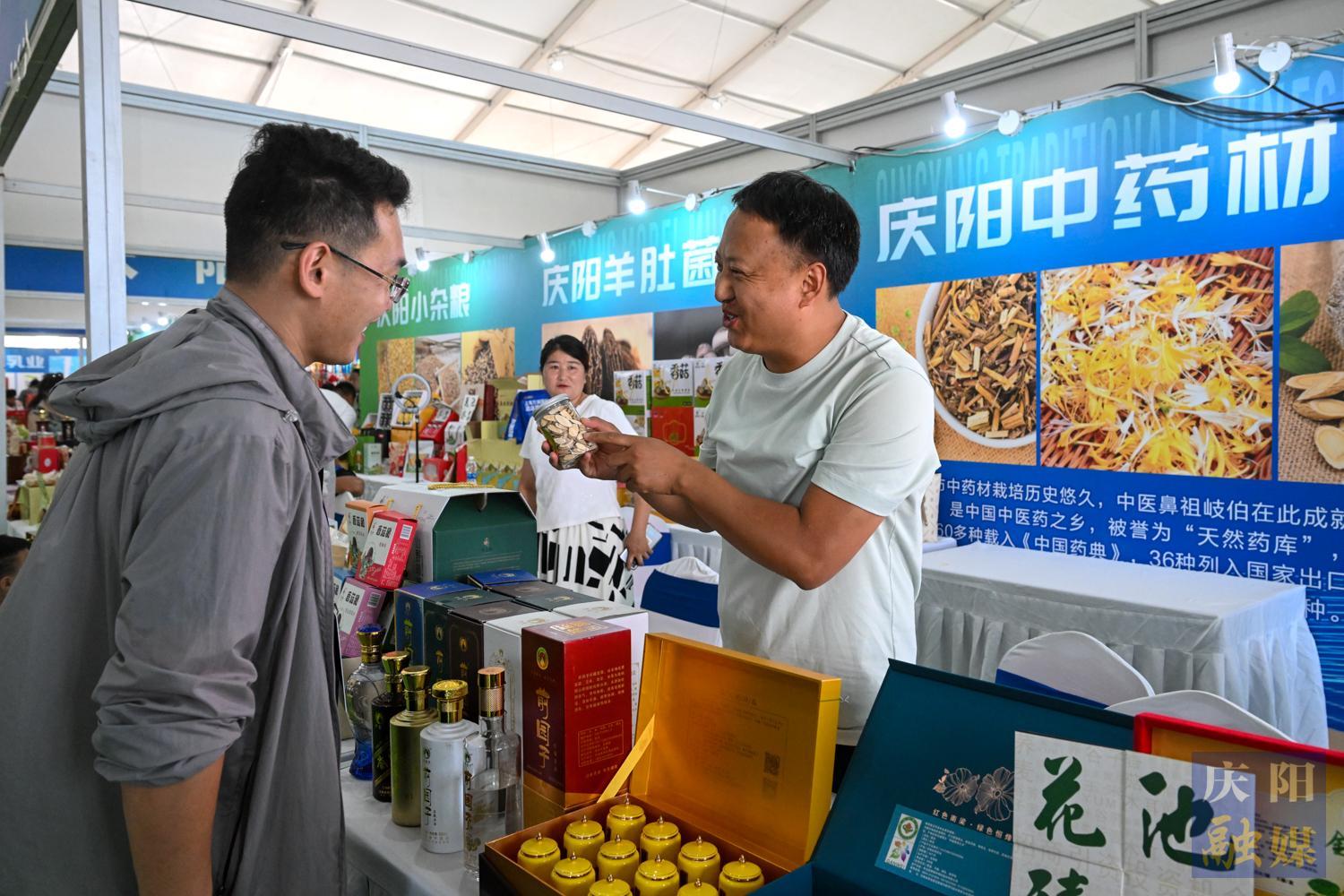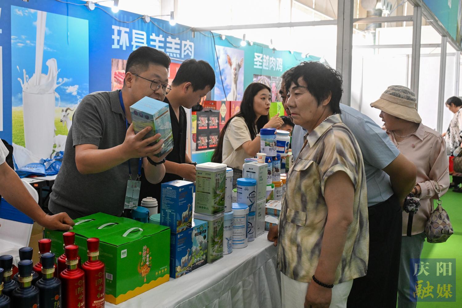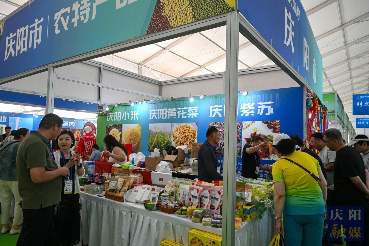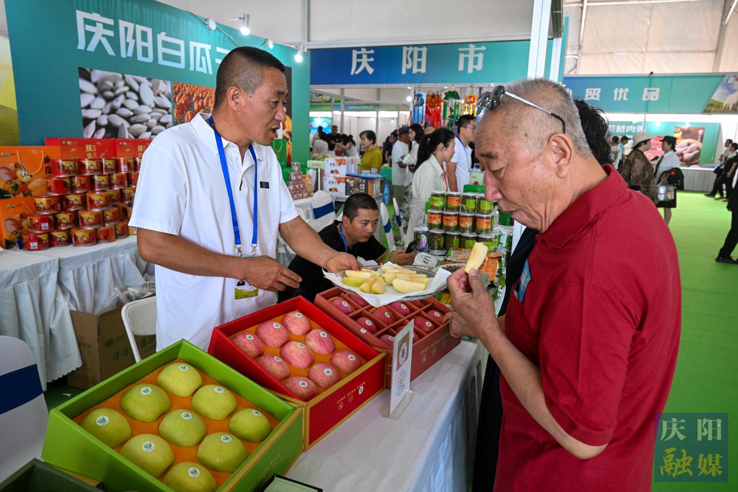 游客咨詢、品嘗慶陽(yáng)農(nóng)特產(chǎn)品。