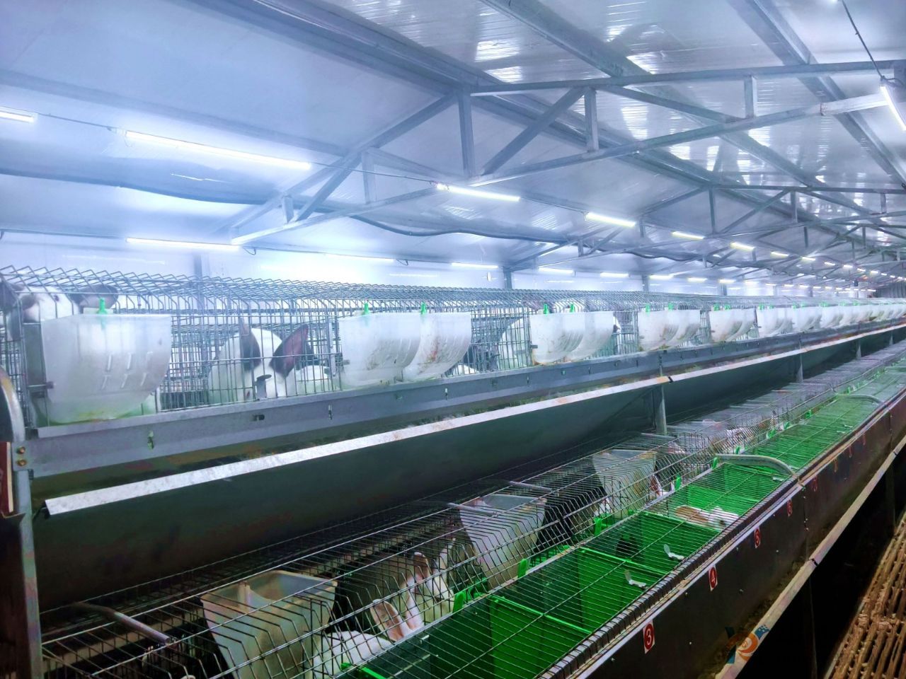 “這里是128棟,總共可以存欄6萬多只種兔。”