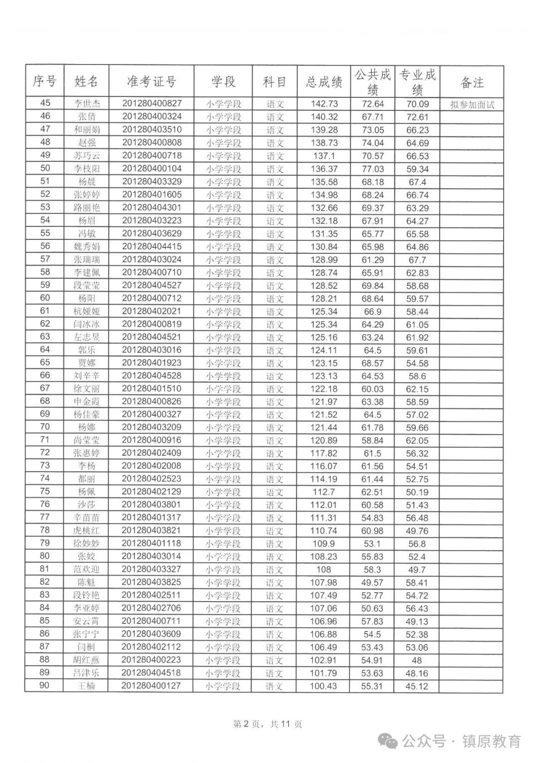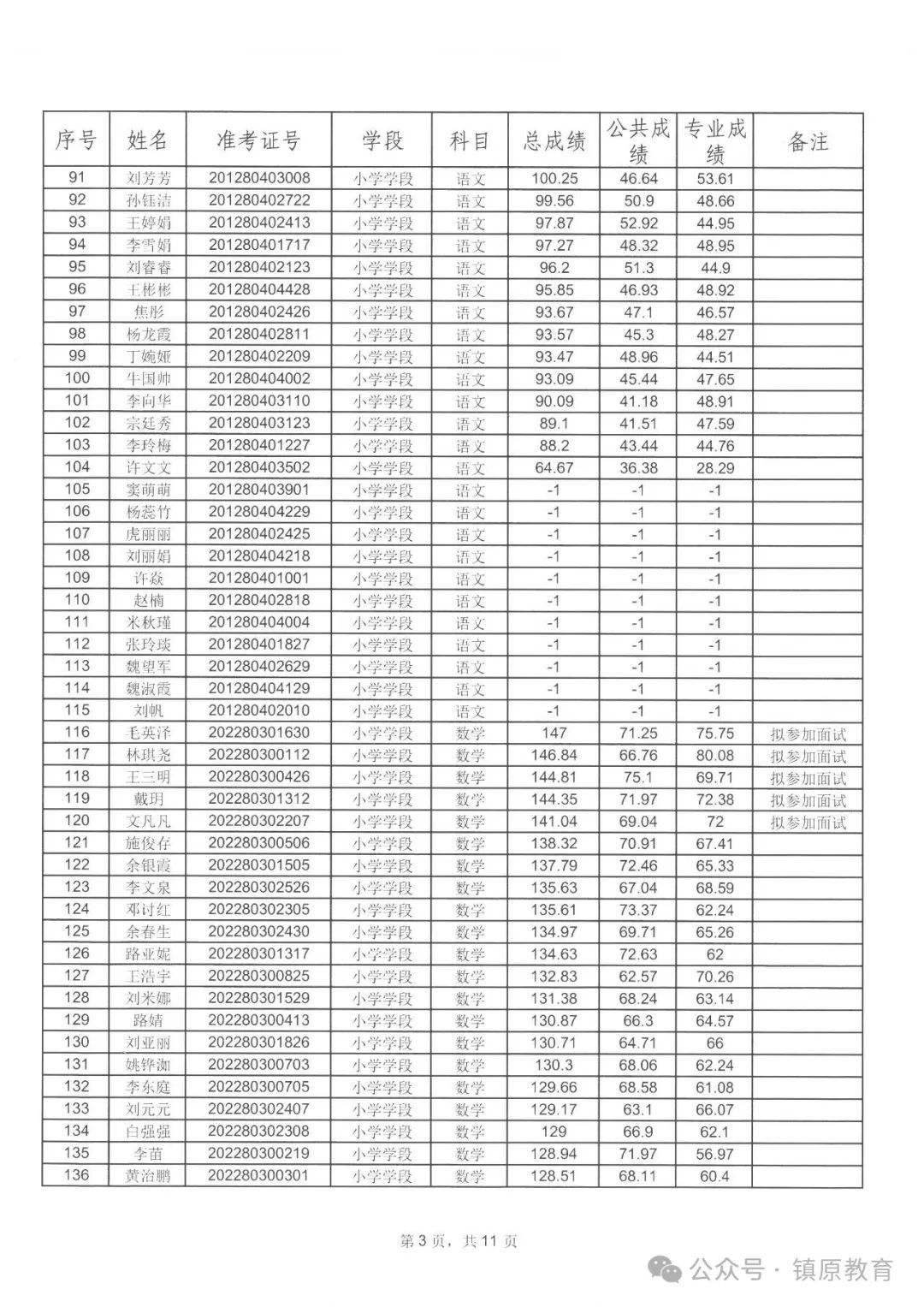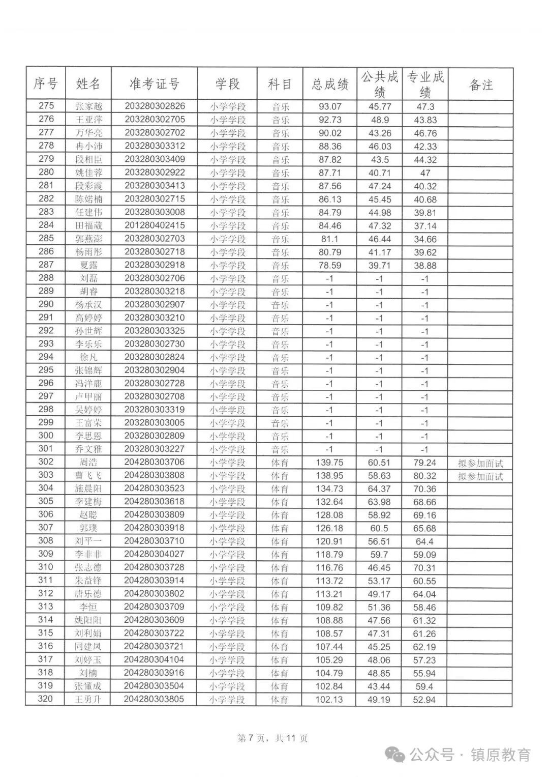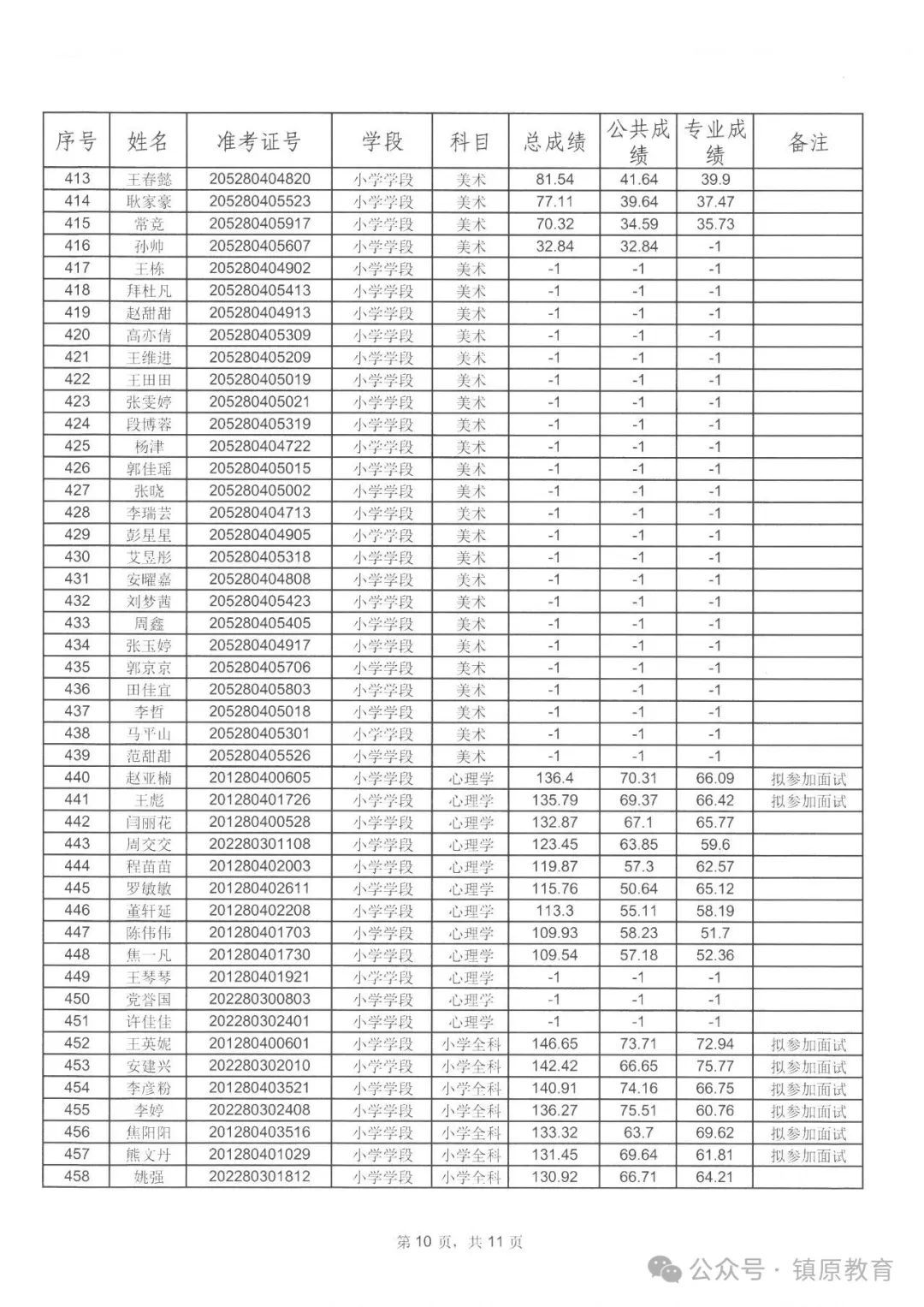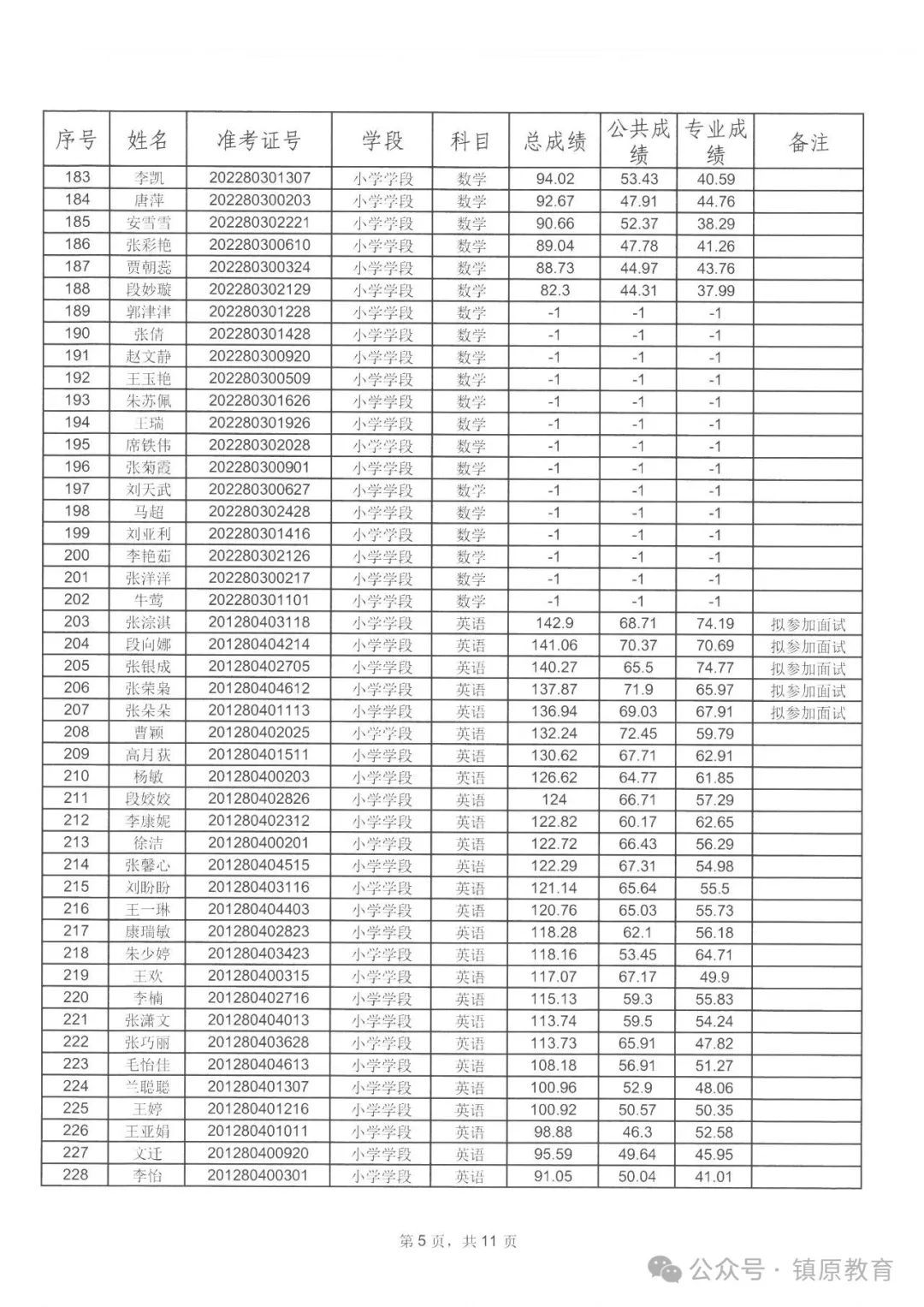 附件:鎮(zhèn)原縣2025年特崗計劃筆試成績及擬參加面試人員名單