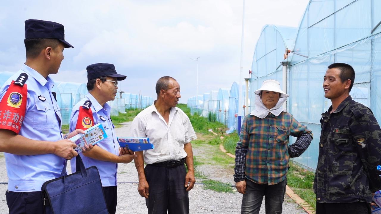 什社派出所民輔警騎行到田間地頭開展防詐宣傳(翟娜娜 攝)