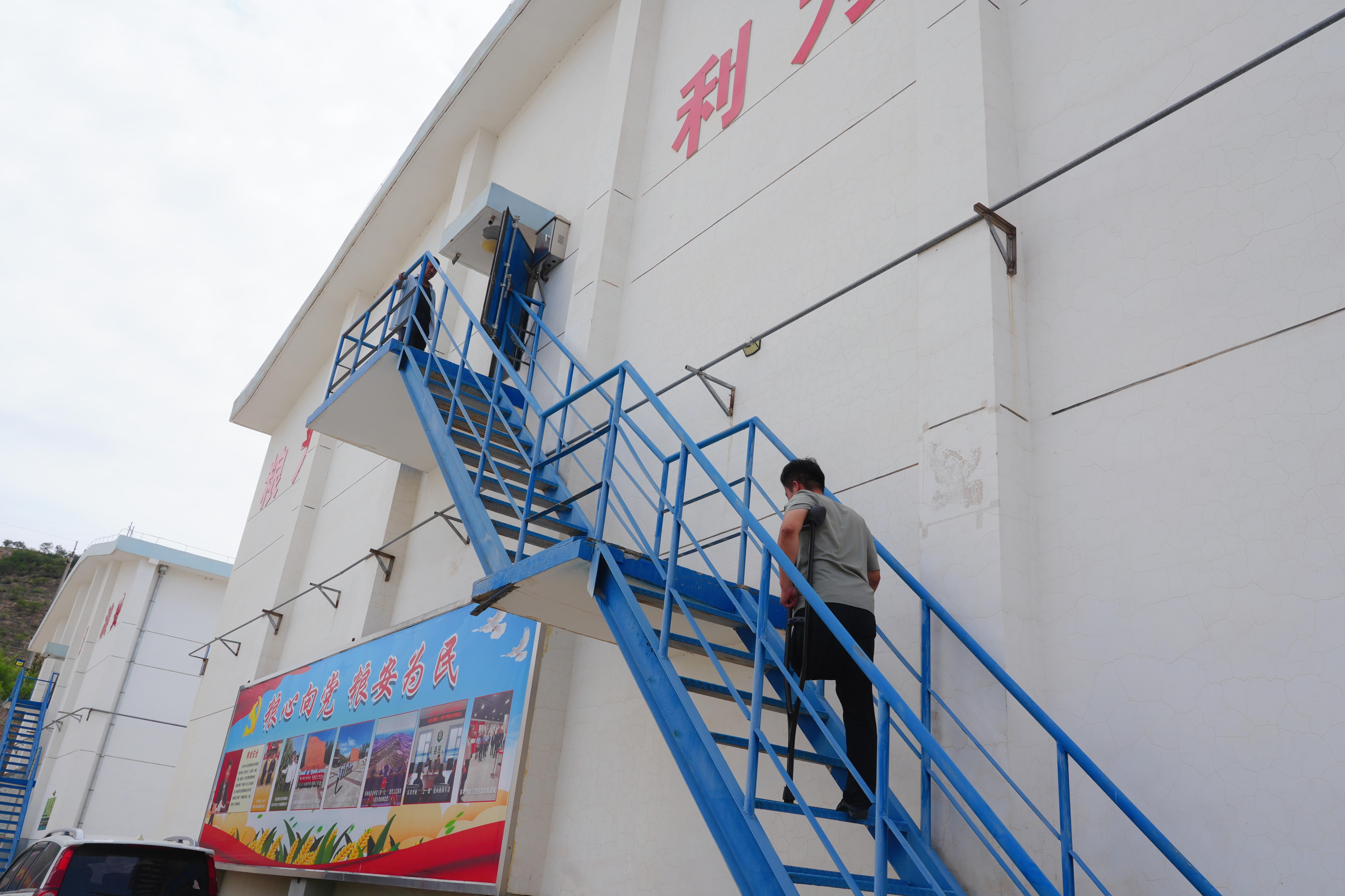 步入環(huán)縣民安糧油儲(chǔ)備有限公司的大門(mén),迎面是排列整齊的6幢糧倉(cāng),倉(cāng)房外側(cè)約6米高的鐵架臺(tái)階是每日查看糧情的必經(jīng)之路!常人都需走的小心翼翼,而郭建慧僅用一條腿、一只拐在這條“鐵架路”上風(fēng)雨無(wú)阻走過(guò)了五個(gè)年頭。