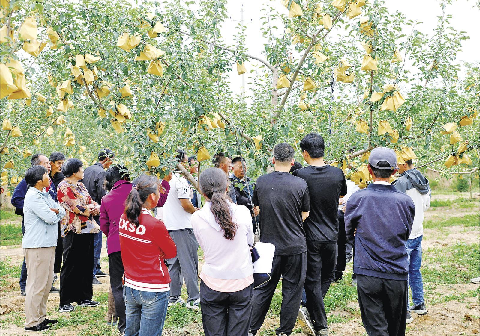 在蘋果示范園的實操現(xiàn)場,技術(shù)人員身穿工作服,手持修剪工具,一邊修剪果樹,一邊仔細講解,果農(nóng)們圍在一旁,看得目不轉(zhuǎn)睛,生怕錯過一個細節(jié)?!拔医裉炀拖氚压芾怼⒋蛩?、修剪的‘真經(jīng)’帶回去,不僅自己學(xué),更要帶動鄉(xiāng)親一起進步?!焙系梨?zhèn)陶洼子村果農(nóng)陶銀娃說。