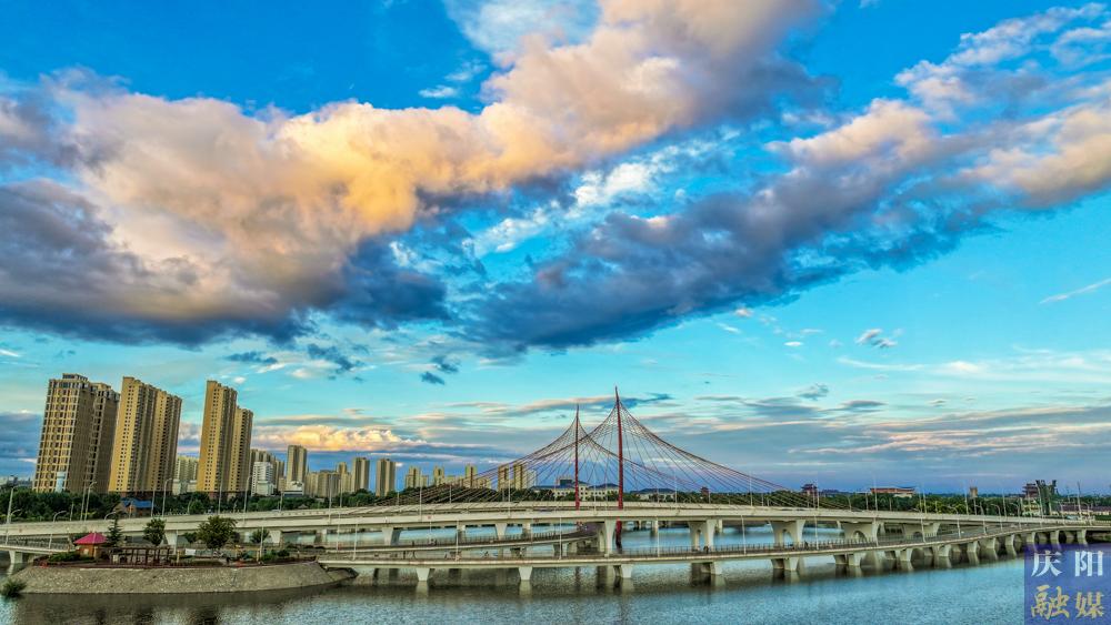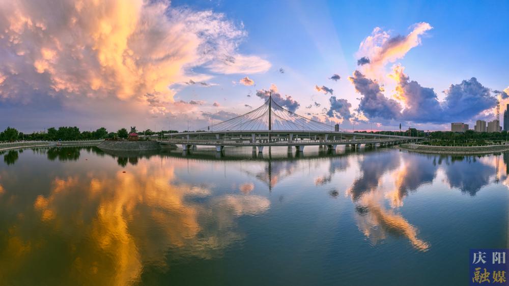慶陽網(wǎng)訊(慶陽融媒記者 陳飛)7月29日,西峰城區(qū)迎來一場降雨,雨過天晴后,彩虹橋上空驚現(xiàn)絕美晚霞。落日余暉將天空染成橙紅色,與彩虹橋的絢麗色彩相互映襯,波光粼粼的水面也被染上金色,美輪美奐,吸引眾多市民駐足觀賞、拍照留念,繪就一幅浪漫迷人的城市畫卷。
