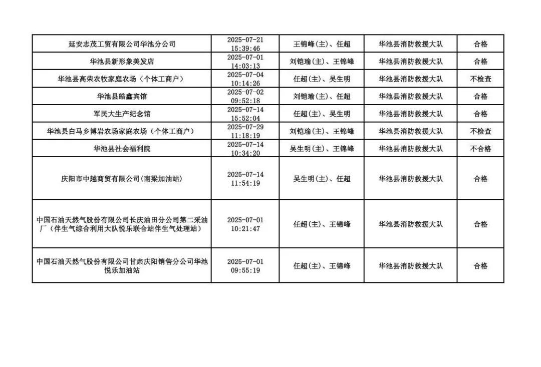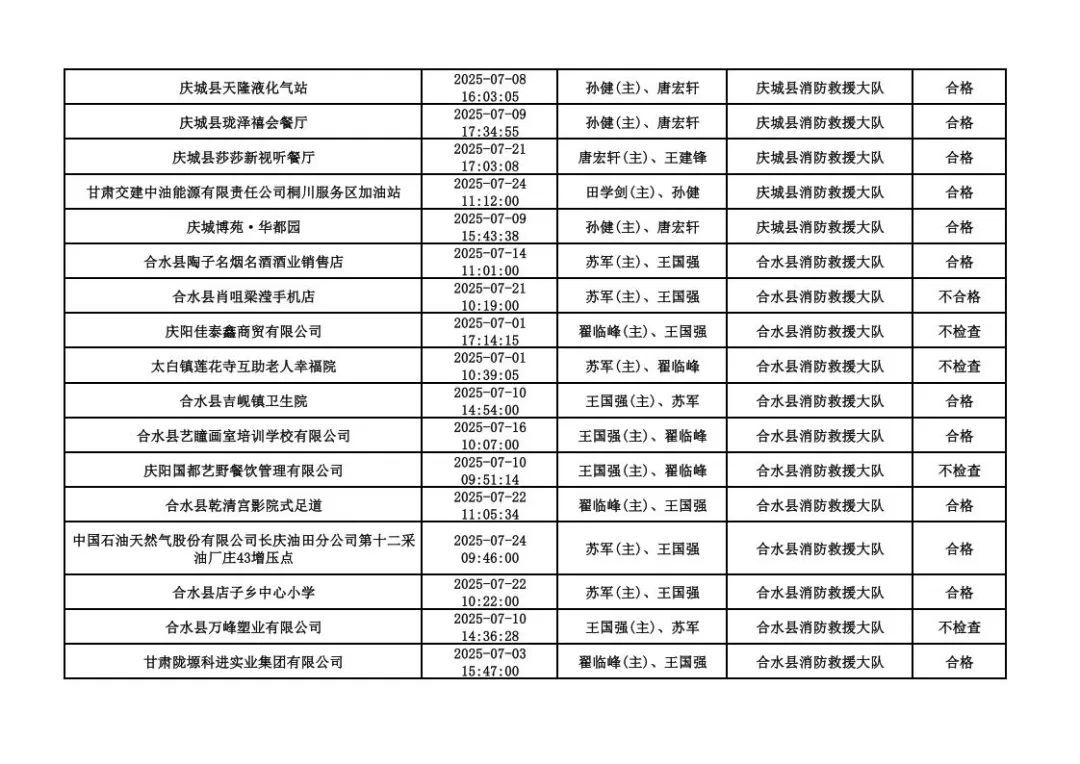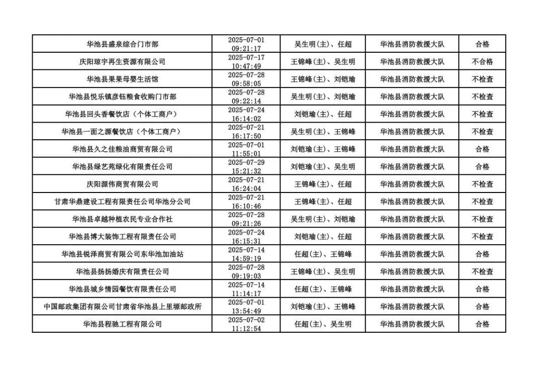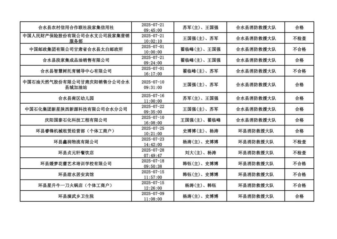 為貫徹落實《消防救援局關(guān)于全面推行“雙隨機、一公開”消防監(jiān)管工作的通知》(應(yīng)急消〔2019〕241號),認真組織實施“雙隨機、一公開”消防監(jiān)管工作,現(xiàn)將2025年7月份“雙隨機、一公開”消防監(jiān)督檢查結(jié)果及2025年8月份監(jiān)督抽查計劃公示如下: