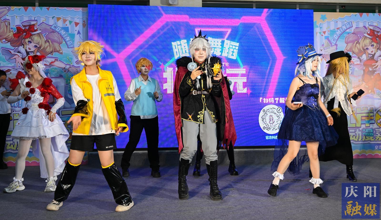孩子們在慶陽市會展管理中心“北岸次元”漫展上,扮演喜愛的動漫角色,即興跳起動漫舞蹈。