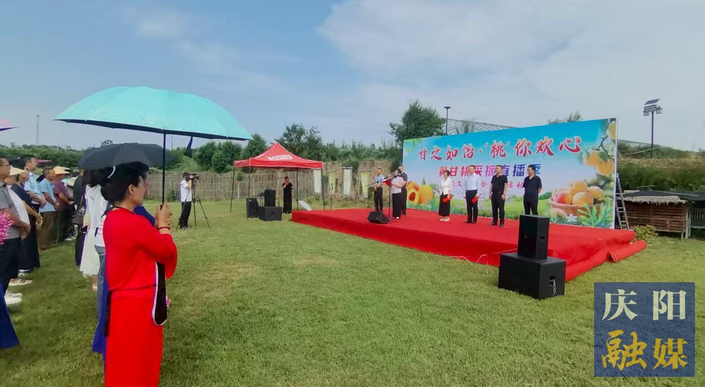 8月1日,寧縣新寧鎮(zhèn)井坳村的千畝桃園變身“云端賣場(chǎng)”,“甘之如飴 ‘桃’你歡心”黃甘桃采摘直播季火熱開啟。網(wǎng)紅達(dá)人走進(jìn)桃園爭(zhēng)相為黃甘桃代言,通過“政府搭臺(tái)+主播帶貨+農(nóng)戶受益”的創(chuàng)新模式,千年貢果黃甘桃搭上電商快車。
