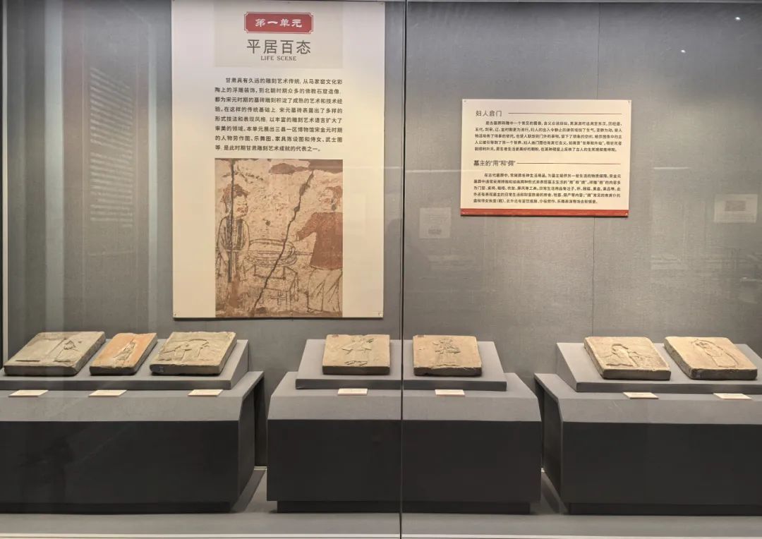 隴西、安定、會寧、武山四縣區(qū)地處北宋、吐蕃、西夏、金國、蒙古的戰(zhàn)爭、交流、貿(mào)易前沿地帶,遺留了大量宋金元時(shí)期墓葬。其墓室彩繪磚、雕磚技法多樣、題材豐富,盡顯獨(dú)特地域特色與鄉(xiāng)土氣息。此次展覽聚焦宋金元時(shí)期的墓室磚藝術(shù),集中展示隴西、安定、武山和會寧縣博物館的館藏精品100件,分為平居百態(tài)、孝道綿長、古瑞佑護(hù)、屋宇微購四部分。它們不僅再現(xiàn)了民族交融時(shí)期人們的思想信仰、審美情趣和精神面貌,體現(xiàn)了近古早期西北地區(qū)磚雕工藝的發(fā)展水平,還提供了該時(shí)期經(jīng)濟(jì)文化及社會變遷的諸多信息,是研究宋金元時(shí)期服飾、風(fēng)俗習(xí)慣等方面的珍貴資料。