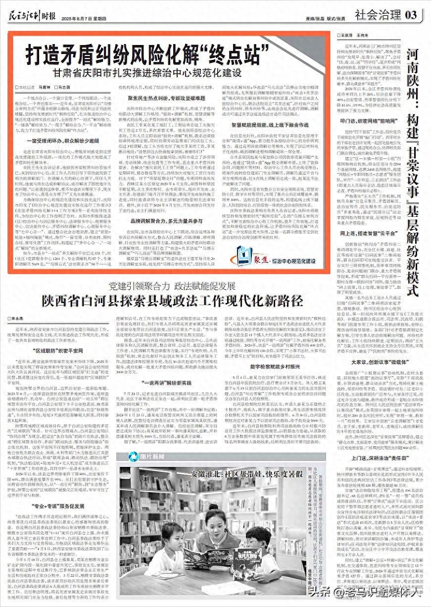 一個(gè)地點(diǎn)辦公、一個(gè)窗口受理、一個(gè)網(wǎng)絡(luò)聯(lián)動(dòng)、一個(gè)流程辦結(jié)、一個(gè)責(zé)任落實(shí)……近年來,甘肅省慶陽市以“馬錫五審判方式”所蘊(yùn)含的群眾路線、司法為民和公正司法的精髓,堅(jiān)持和發(fā)展新時(shí)代“楓橋經(jīng)驗(yàn)”,扎實(shí)推進(jìn)綜治中心規(guī)范化建設(shè)和實(shí)戰(zhàn)化運(yùn)行,全面提升“一站式”解紛能力、“一鏈條”解紛效力、“一攬子”解紛合力、“一平臺(tái)”解紛助力,致力于打造矛盾糾紛風(fēng)險(xiǎn)化解“終點(diǎn)站”。