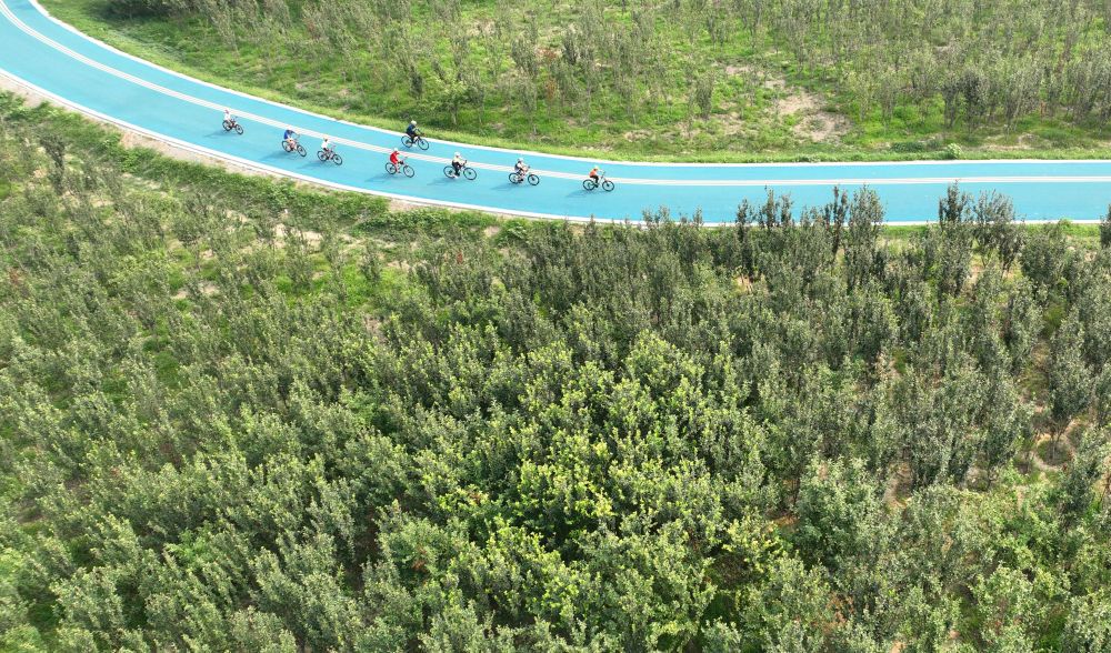 2024年7月10日,自行車愛(ài)好者在石家莊市環(huán)城綠道北線騎行休閑。近年來(lái),石家莊依托滹沱河、環(huán)城水系等優(yōu)質(zhì)景觀資源,通過(guò)架設(shè)橋梁、提升景觀和完善綠地等措施,打造景美、智游、暢達(dá)的城市綠道健身體系,加強(qiáng)環(huán)城綠道與中心城區(qū)串聯(lián)銜接,方便市民無(wú)障礙步行或騎行,提升群眾生活幸福感和獲得感。