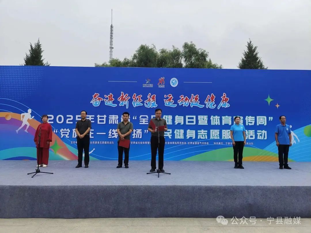 8月8日,“奮進新征程 運動促健康”——2025年甘肅省“全民健身日暨體育宣傳周”“黨旗在一線飄揚”全民健身志愿服務(wù)活動(寧縣站)在寧縣縣城九龍廣場舉辦。
