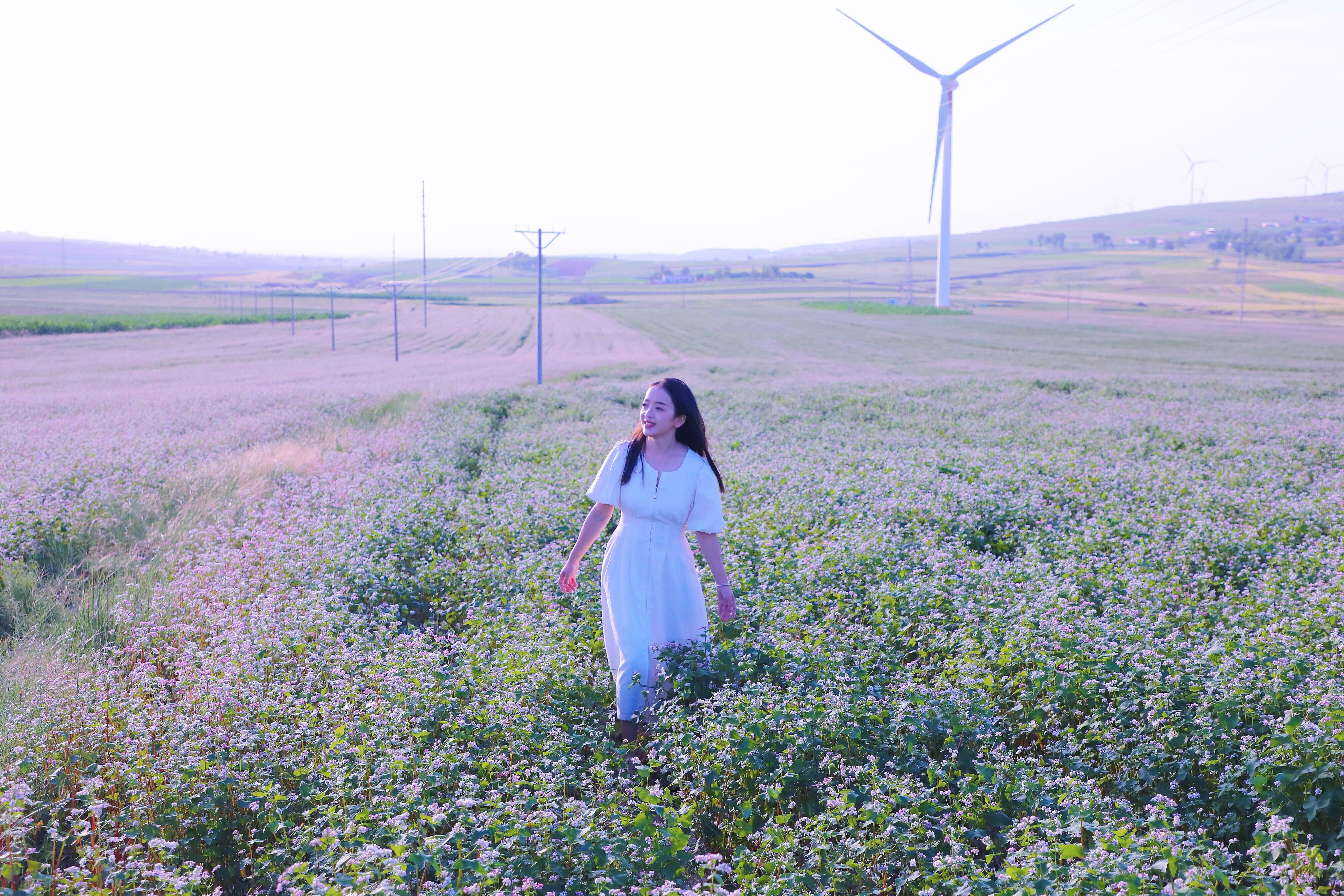 “獨(dú)出前門望野田,月明蕎麥花如雪?!背跚飼r(shí)節(jié),環(huán)縣各鄉(xiāng)鎮(zhèn)的45萬畝蕎麥花迎來盛花期。晴空之下,一片片、一壟壟蕎麥花枝枝簇?fù)?、競相綻放,微風(fēng)吹過,花稈搖曳,與藍(lán)天、白云、黛青色的山巒相映成趣,構(gòu)成獨(dú)特的田園風(fēng)光,吸引了不少游客前來觀賞、拍照“打卡”。