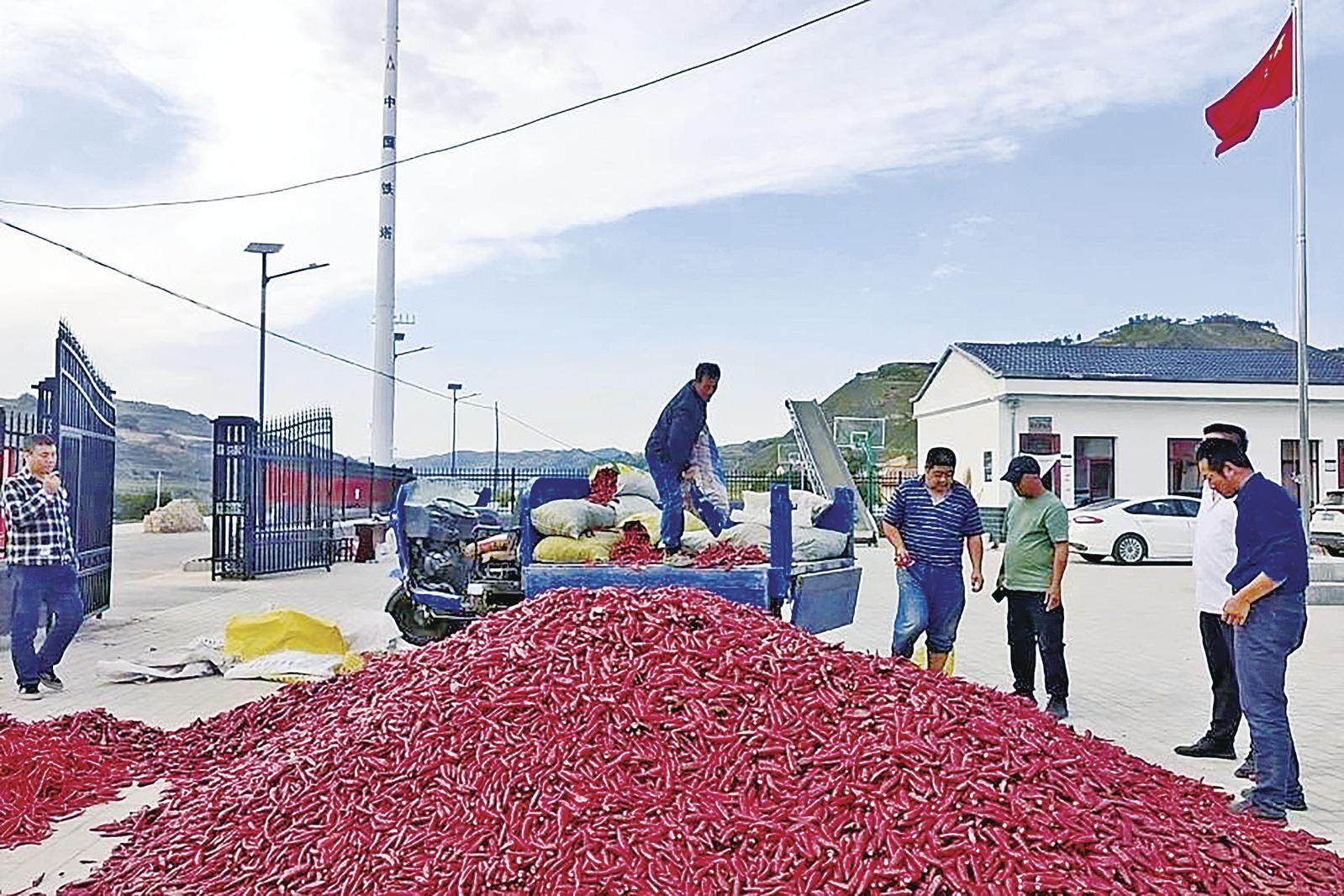白家川村群眾在收購(gòu)點(diǎn)交售采摘的辣椒。 慶陽(yáng)融媒記者 白勇濤 攝