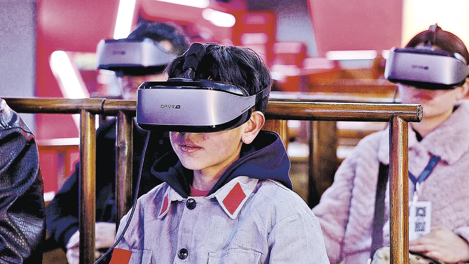 研學(xué)學(xué)子在“穿越烽火”VR沉浸式體驗(yàn)館體驗(yàn)。 慶陽融媒記者 封康康 攝