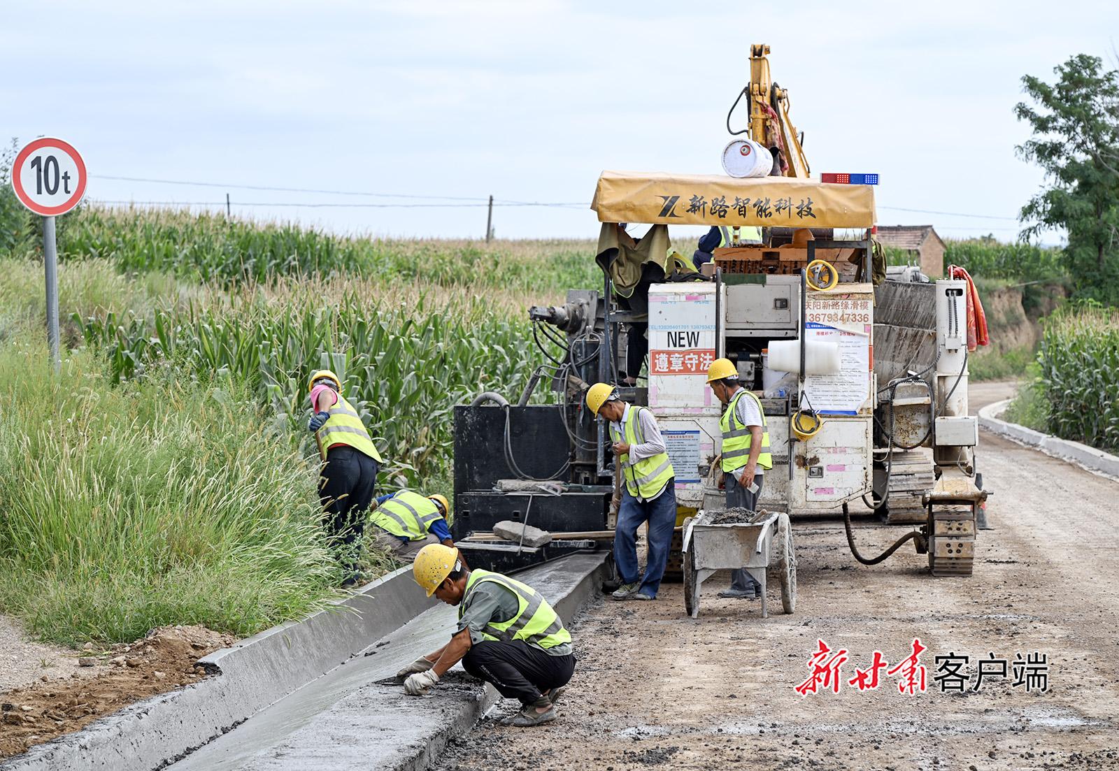 8月22日,位于正寧縣境內(nèi)的S501線五頃塬至三嘉公路改建工程建設(shè)現(xiàn)場,工人正在相互協(xié)作,進(jìn)行附屬邊溝施工。