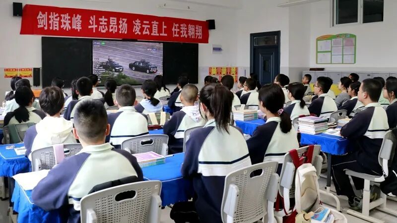 在西峰區(qū)學院路實驗學校,國旗升起的那一刻,全體師生起立,懷著崇敬之情高唱國歌。隨著閱兵式的進行,大家時而為整齊威武的方陣喝彩,時而為新型武器的亮相而振奮,現(xiàn)場洋溢著濃厚的愛國主義氛圍。