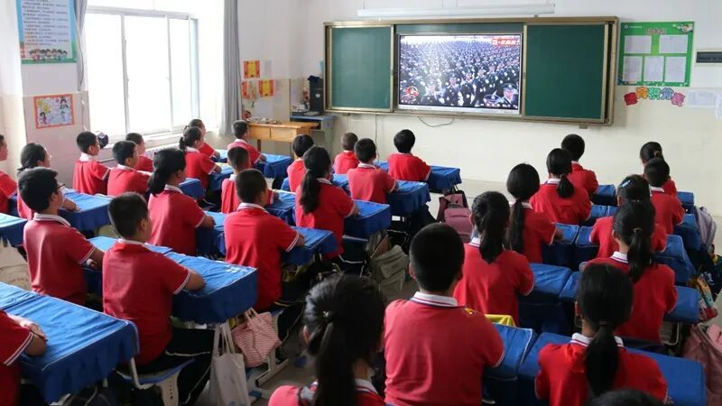 在西峰職業(yè)中專和顯勝實驗學(xué)校,師生們?nèi)逃^看閱兵盛典,共同見證這一莊嚴(yán)而偉大的時刻。