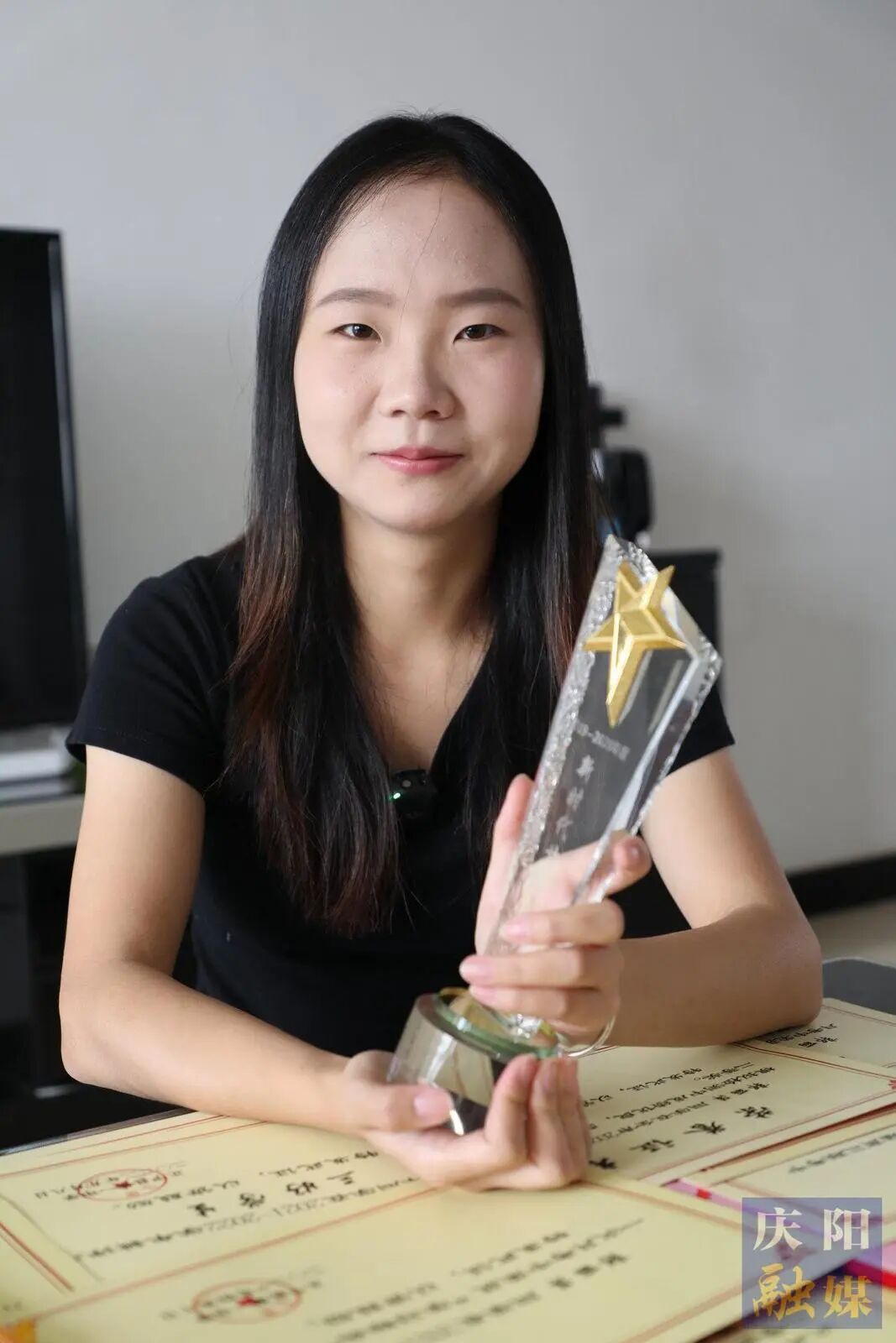 郭麗萍手捧獎(jiǎng)杯。慶陽(yáng)融媒記者 閆慧攝