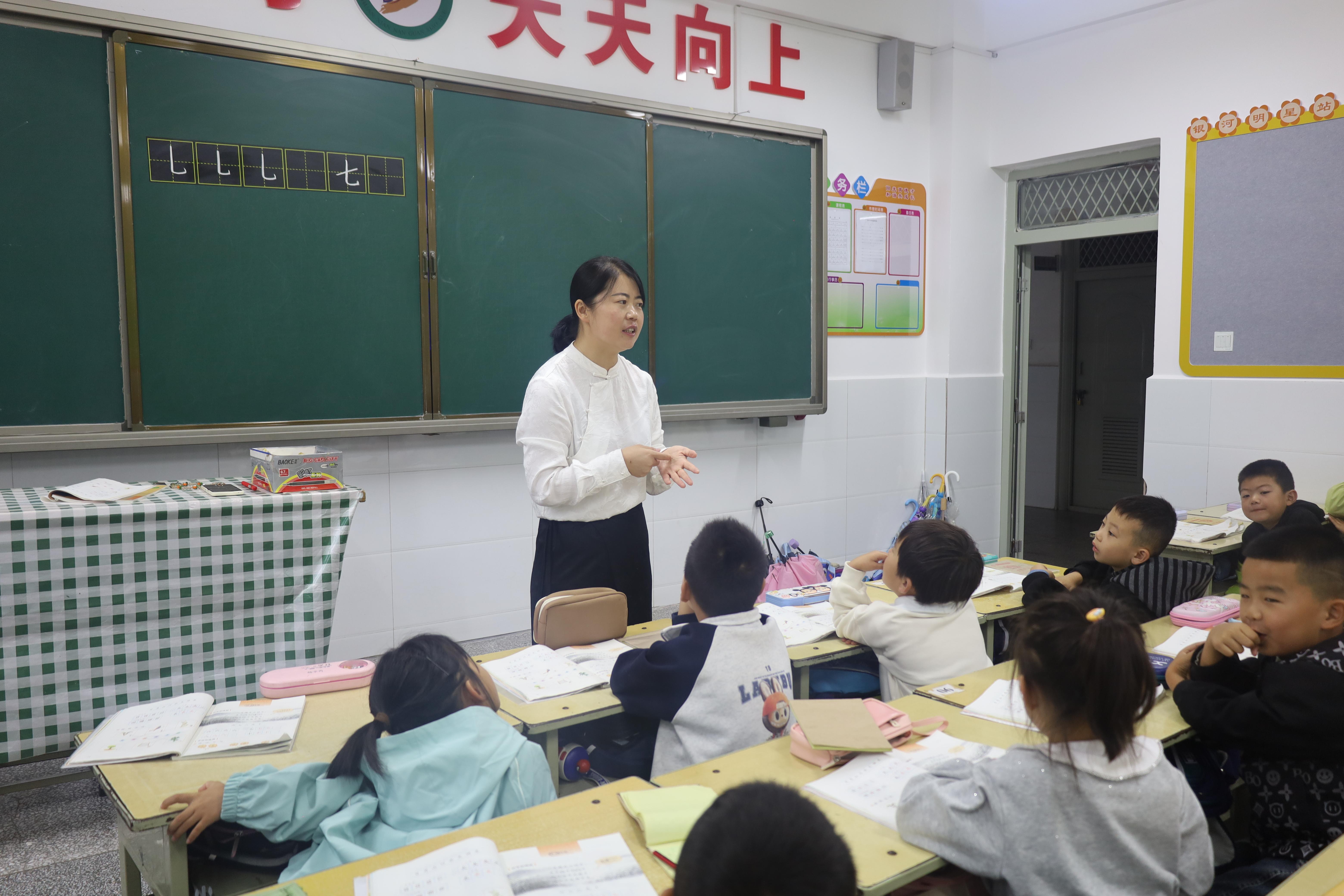清晨,在環(huán)縣南關(guān)小學(xué)一年級(10)班的教室,龔金鳳站在田字格黑板前一筆一劃地給孩子們講解生字部首的概念,講臺下的孩子們聽得聚精會神?!拔易钕矚g我們班的龔老師了,有時(shí)候我們表現(xiàn)的好,她會給我們發(fā)小獎品,她是最溫柔的老師?!蹦详P(guān)小學(xué)學(xué)生張悅開心地說。