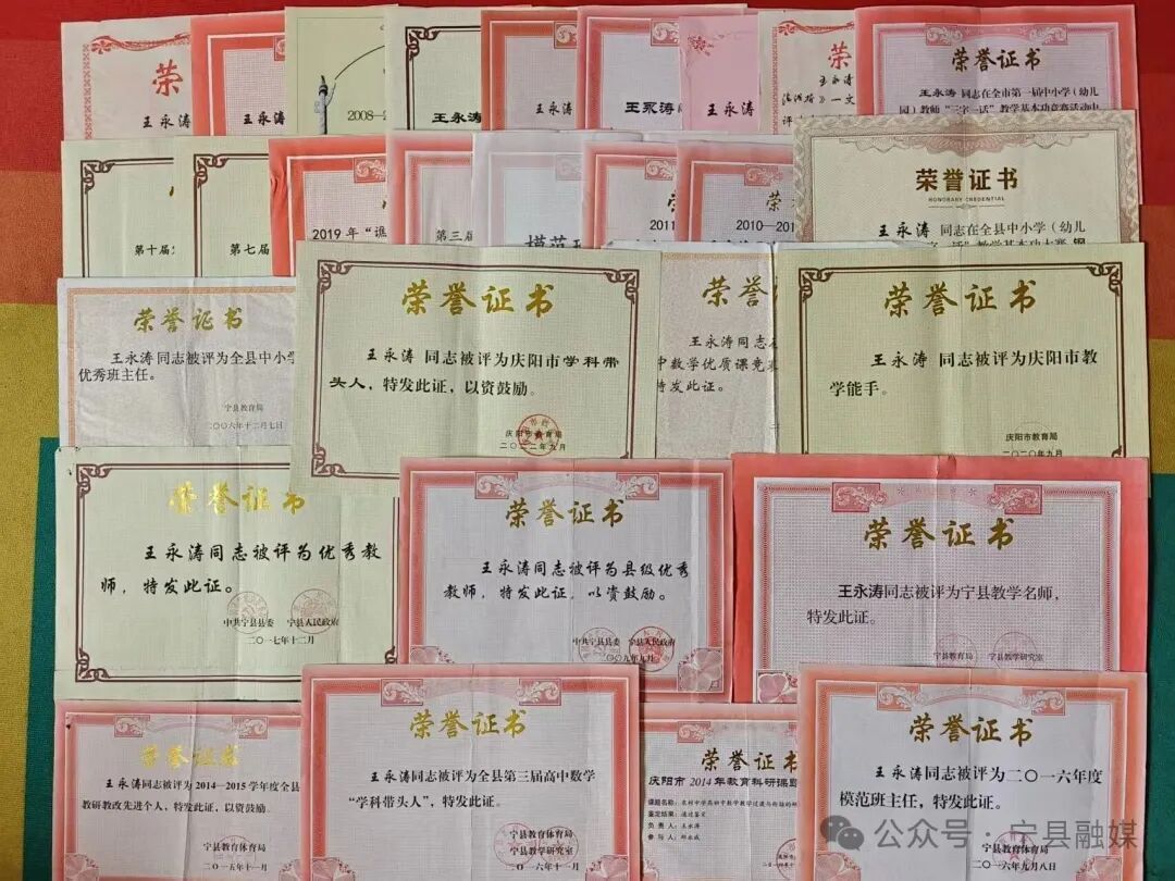出色的教育教學(xué)業(yè)績?yōu)樗A得了諸多榮譽(yù):慶陽市“教學(xué)能手”“學(xué)科帶頭人”、寧縣“學(xué)科帶頭人”“教學(xué)名師”等稱號(hào),以及2002年全縣數(shù)學(xué)優(yōu)質(zhì)課競賽三等獎(jiǎng)。但他從未沉醉于榮譽(yù),而是始終扎根教學(xué)一線,用實(shí)際行動(dòng)踐行教育理念。