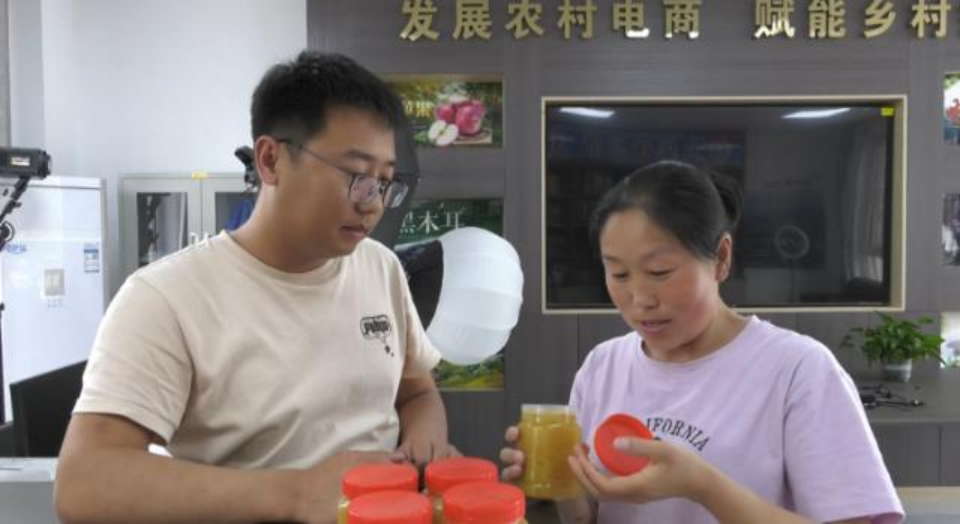 在蒿咀鋪鄉(xiāng)蒿咀鋪村農(nóng)副產(chǎn)品合作社,村民鄧娟將新產(chǎn)的土蜂蜜拿到這里,隨后這些土蜂蜜便搭乘電商“快車”,到達(dá)消費(fèi)者手中。