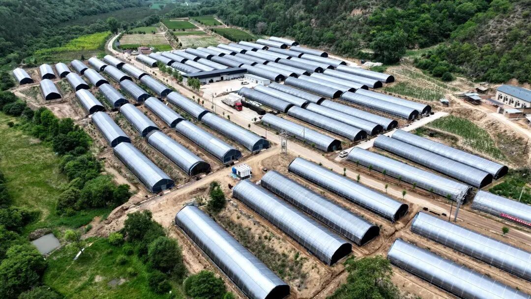 合水縣太白鎮(zhèn)“三元雙向”低碳菌業(yè)產(chǎn)業(yè)園俯瞰。