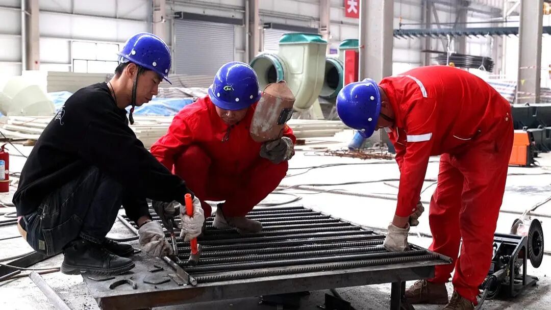 甘肅全利電力裝備有限公司廠房?jī)?nèi),工人在加工鋼筋。通訊員 雷彩利 攝