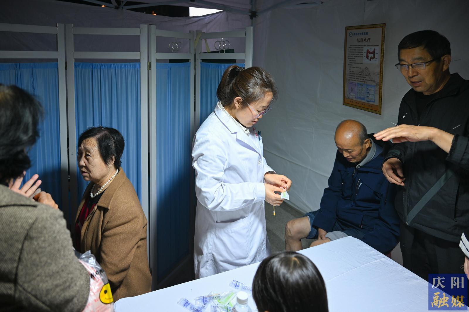中醫(yī)適宜技術(shù)體驗區(qū)的醫(yī)生為患者現(xiàn)場針灸。