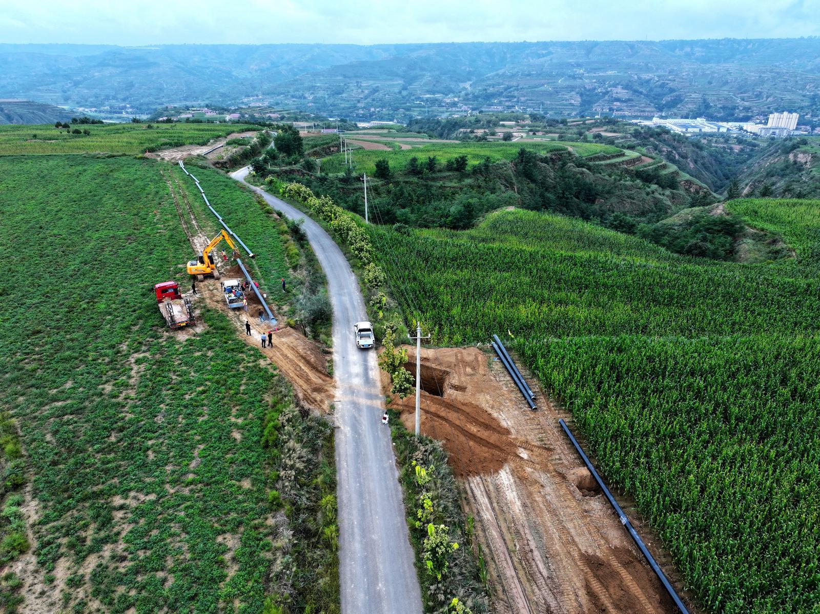 “氣化慶陽”天然氣輸氣干線項(xiàng)目鎮(zhèn)原段工程城關(guān)鎮(zhèn)高莊村施工現(xiàn)場。慶陽融媒記者 趙彩霞 攝