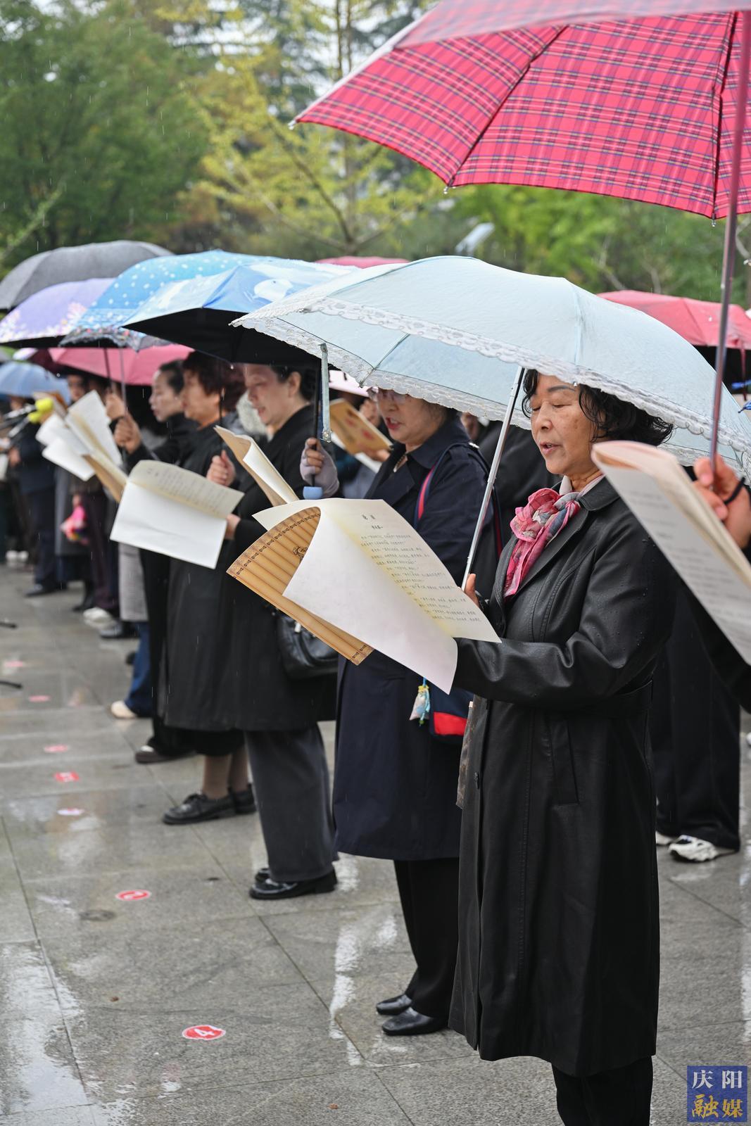 秋雨潤(rùn)澤,更添莊重。全體參與者于綿綿細(xì)雨中齊聲誦讀《論語》經(jīng)典篇章,在朗朗書聲中感悟先賢智慧。儀式還包括向至圣先師行拜師禮、齊誦《橫渠四句》等環(huán)節(jié)?;顒?dòng)尾聲,參與者集體移步慶陽市檔案館,在欣賞《論語》書法長(zhǎng)卷的同時(shí),參觀了“中國(guó)共產(chǎn)黨人的家風(fēng)”檔案展,為這場(chǎng)文化盛宴增添了厚重的歷史維度。
