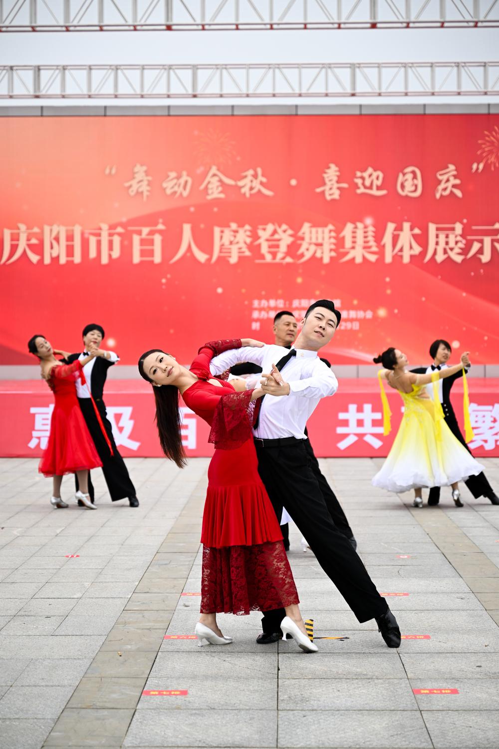 慶陽網(wǎng)訊(慶陽融媒記者 俄少飛)9月29日,慶陽市文化館與市國際標(biāo)準(zhǔn)舞協(xié)會(huì)共同舉辦了“舞動(dòng)金秋,喜迎國慶”百人摩登舞展演。展演在市文化館廣場(chǎng)舉行,百名舞者以基本步、雙人華爾茲和探戈組合等節(jié)目,為市民呈現(xiàn)了一場(chǎng)高水平的表演?;顒?dòng)最終在全體演員對(duì)祖國的祝福中圓滿落幕。