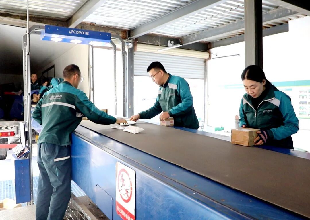 醫(yī)院內(nèi)守護(hù)生命的節(jié)奏緊張有序,街巷間傳遞溫暖的腳步同樣不停。華池縣寄遞共配中心里,傳送帶飛速運(yùn)轉(zhuǎn),分揀員田學(xué)成的雙手在包裹間靈活穿梭,他和工作人員齊心協(xié)力按區(qū)域快速分類,每小時(shí)可完成近300件包裹的分揀任務(wù)。