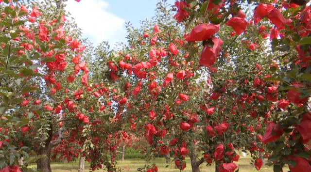 近日,記者走進何家畔鎮(zhèn)趙樓子村的一處蘋果園,一排排整齊的果樹上,圓潤飽滿的蘋果在陽光下透亮誘人。果農(nóng)趙武斌正和前來幫忙的村民一起為蘋果去除套袋,為接下來的采摘和銷售做準備。