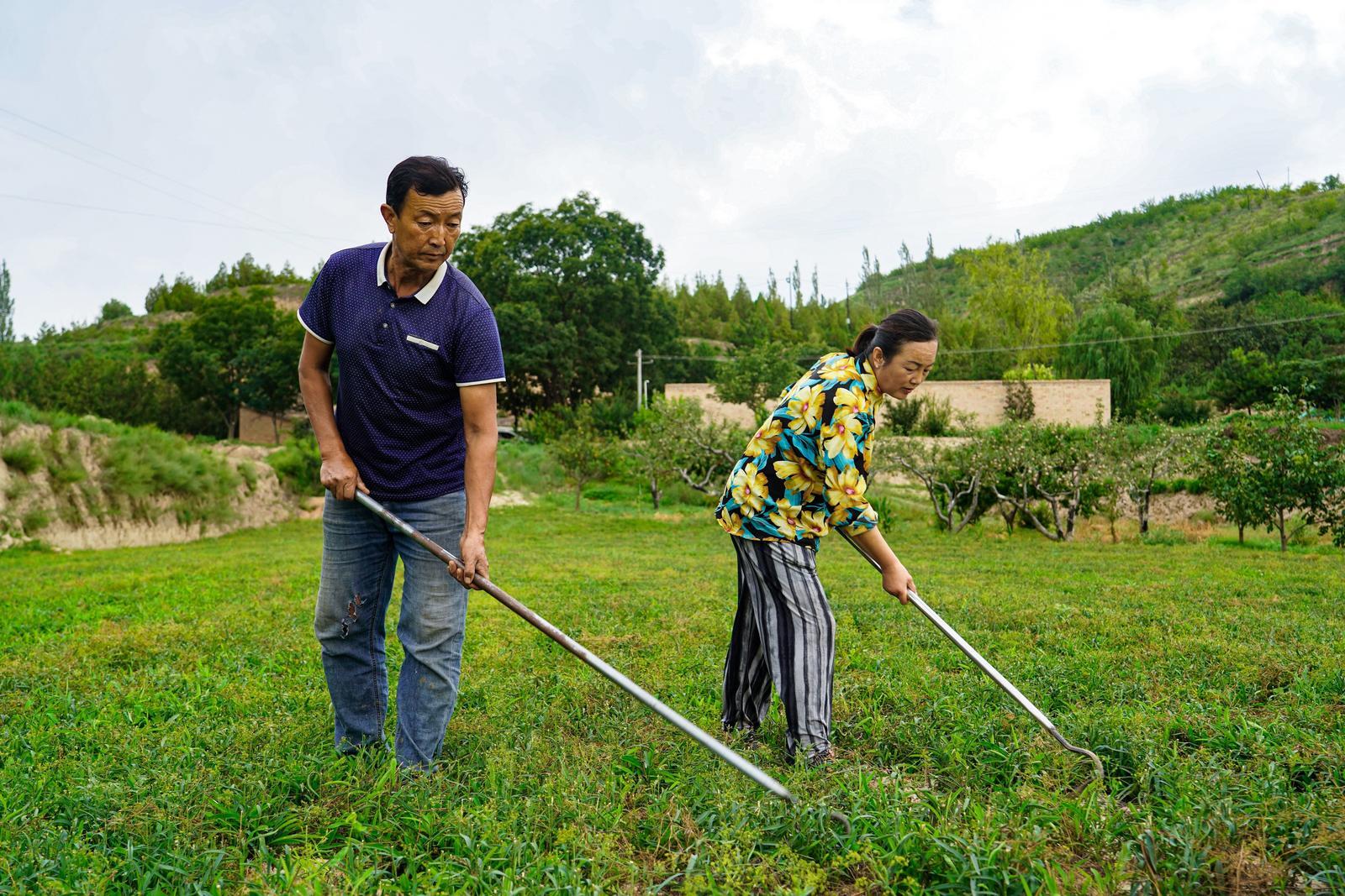 合道鎮(zhèn)唐臺子村黃麗萍夫婦給藥材鋤草。