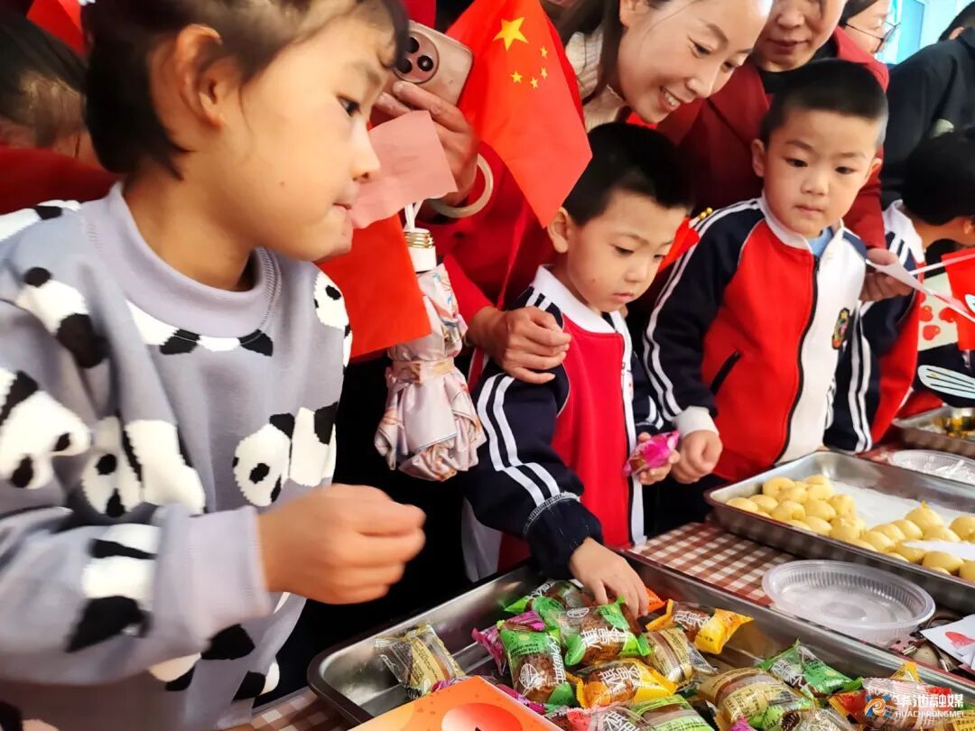 在熱鬧的戶外游戲中,孩子和家長們共同聆聽革命事跡、一起積極參與飛奪瀘定橋、猜燈謎等活動,用所得的游戲幣兌換“憶苦思甜餐” 。孩子們在玩鬧與創(chuàng)作中,既摸到了中秋的團(tuán)圓溫度,又激發(fā)了孩子們的愛國熱情。