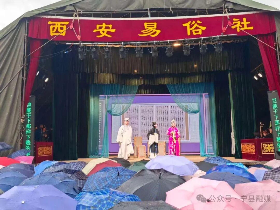 十月的寧縣,秋意漸濃,細(xì)雨霏霏。10月1日,當(dāng)國(guó)慶的喜悅彌漫這座小城,歡悅寧州文化創(chuàng)意街區(qū)卻別有一番熱鬧景象——一場(chǎng)由百年名社西安易俗社帶來的折子戲?qū)?chǎng),在朦朧雨絲中鳴鑼開唱,為古韻寧州平添了一份獨(dú)特的梨園雅趣。